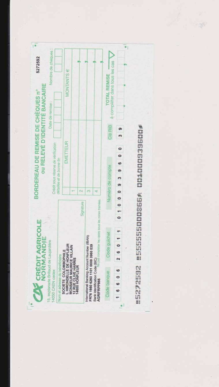 Paiement par virement sur le compte ci-dessous IBAN FR76 1660 6260 1101 0009 3960 039 BIC : AGRIFRPP866