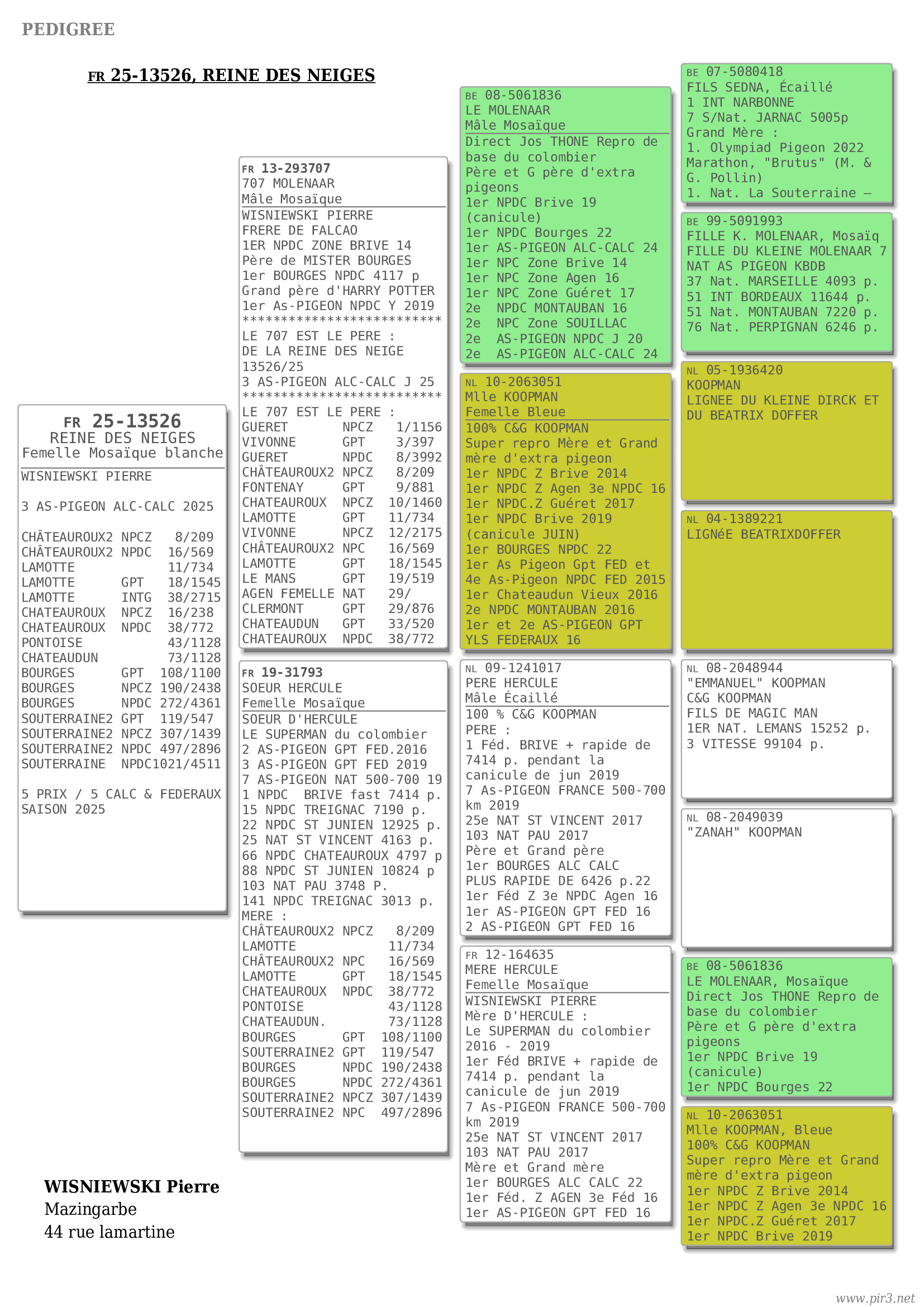 Le 707 (FR 293707/13) est sans discussion l’un des meilleurs reproducteurs du colombier.