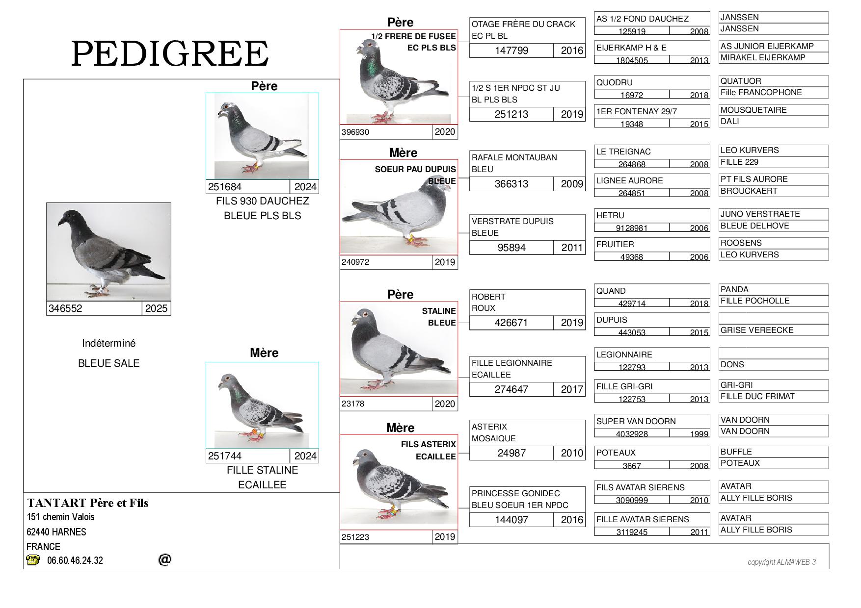La mère est le produit de deux pigeons classés dans le top 5 de Pau 2024 Cifr mais surtout de la 223 qui cette année se classe encore en tête de Pau et Perpignan après avoir gagné en plus en 2024 le 3ème de Perpignan CIFR.