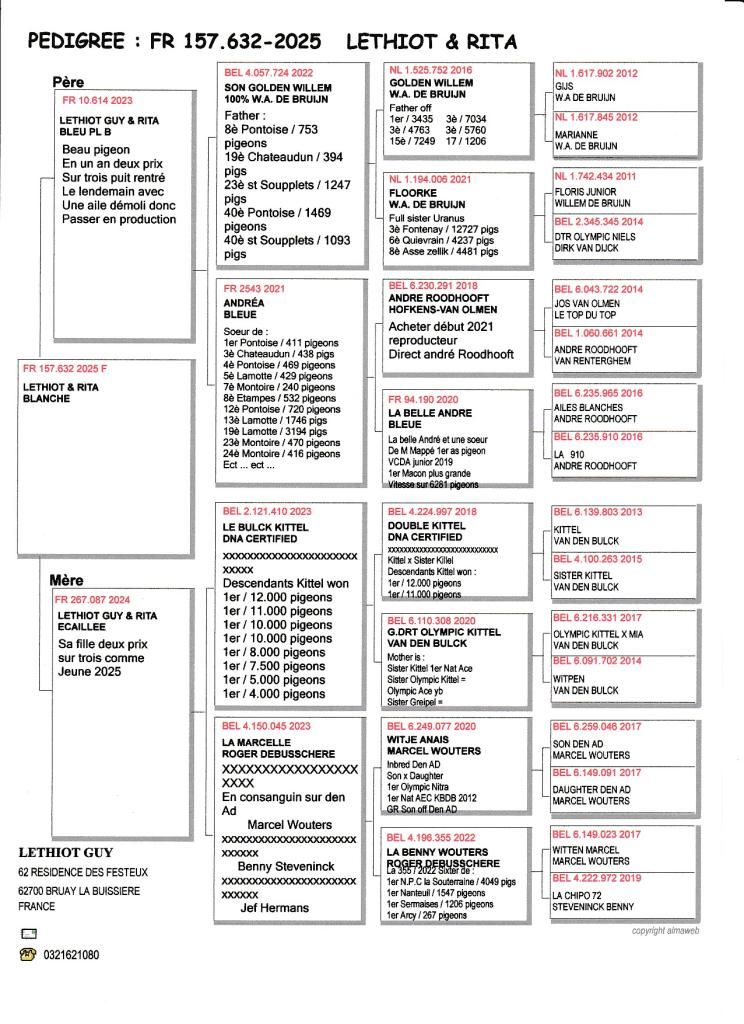 N° 04 : 25-157632 : Femelle Willem De Bruijn xRoodhooft X Kittel x Marcel wouters