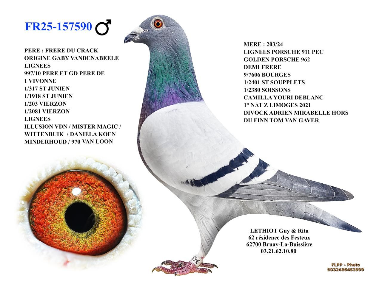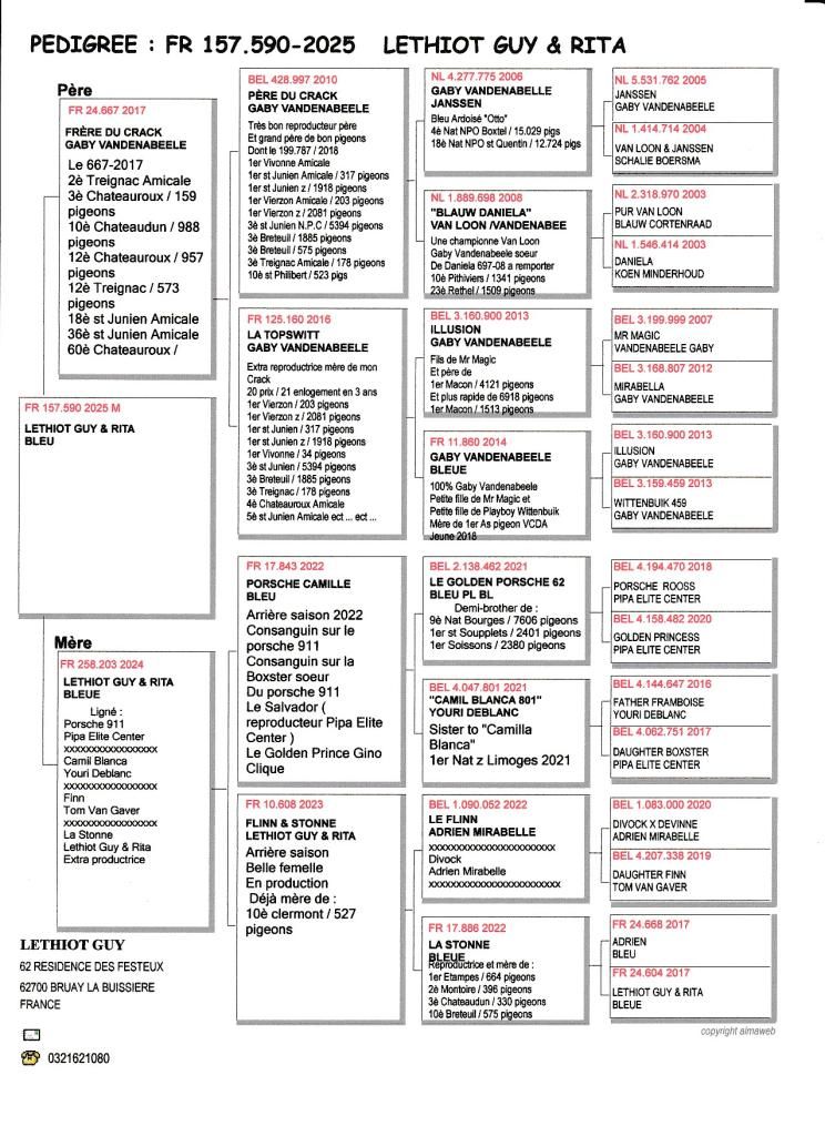 N° 06 : 25-157590 : Mâle Gaby Vandenabeele x le golden Porsche x Flinn x Stonne