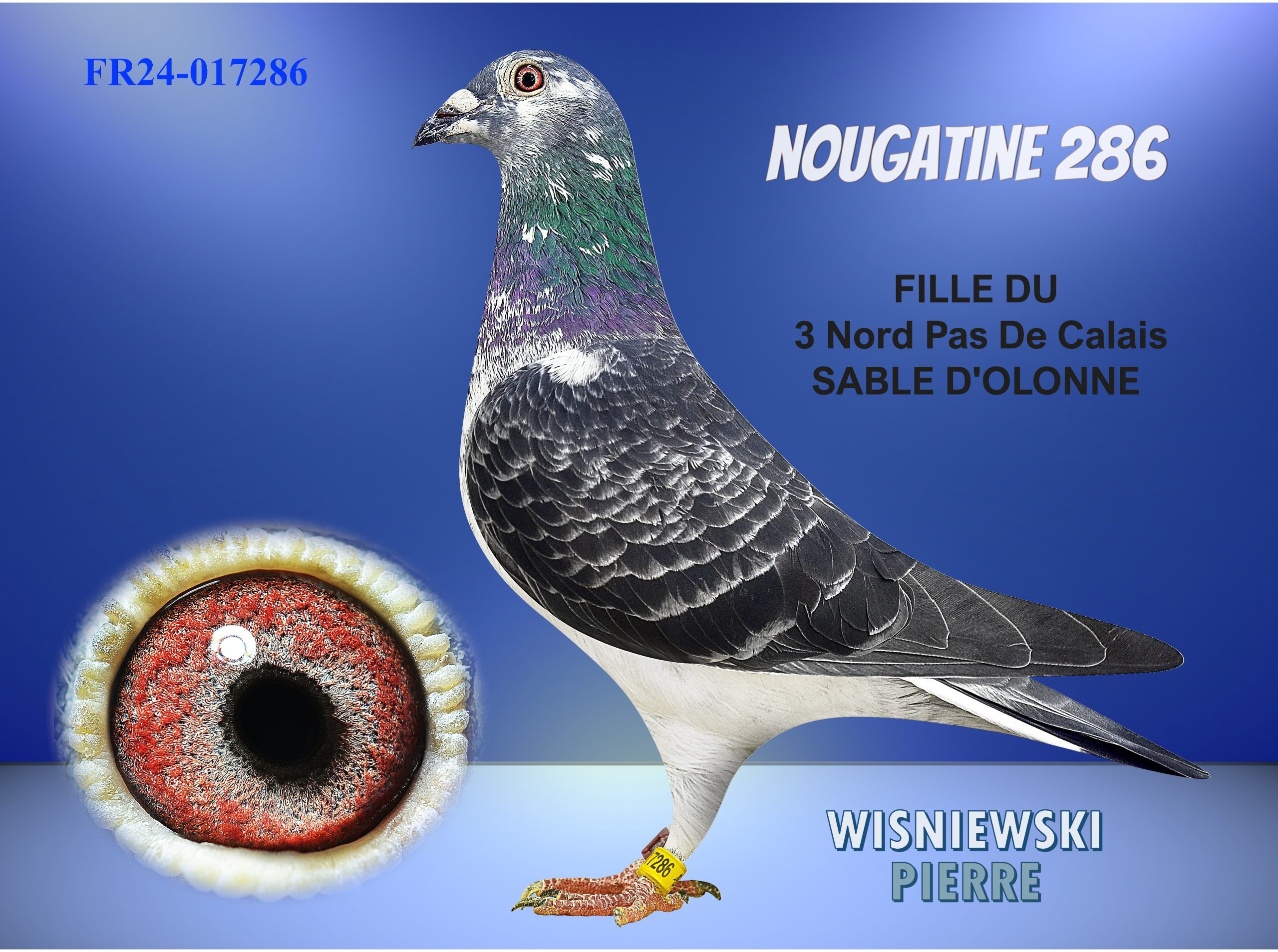 Femelle issu d’une famille de champion c’est la fille de la “PRINCESSE KILLER 504 “ une Top reproductrice mais elle se classe aussi 13/1797 PONTOISE – 26/345 CHÂTEAUDUN 46/835 TREIGNAC NPDC – 56/1689 CHÂTEAUROUX NPDC… – et du “ 92 “ 3 NPDC SABLE D’OLONNE