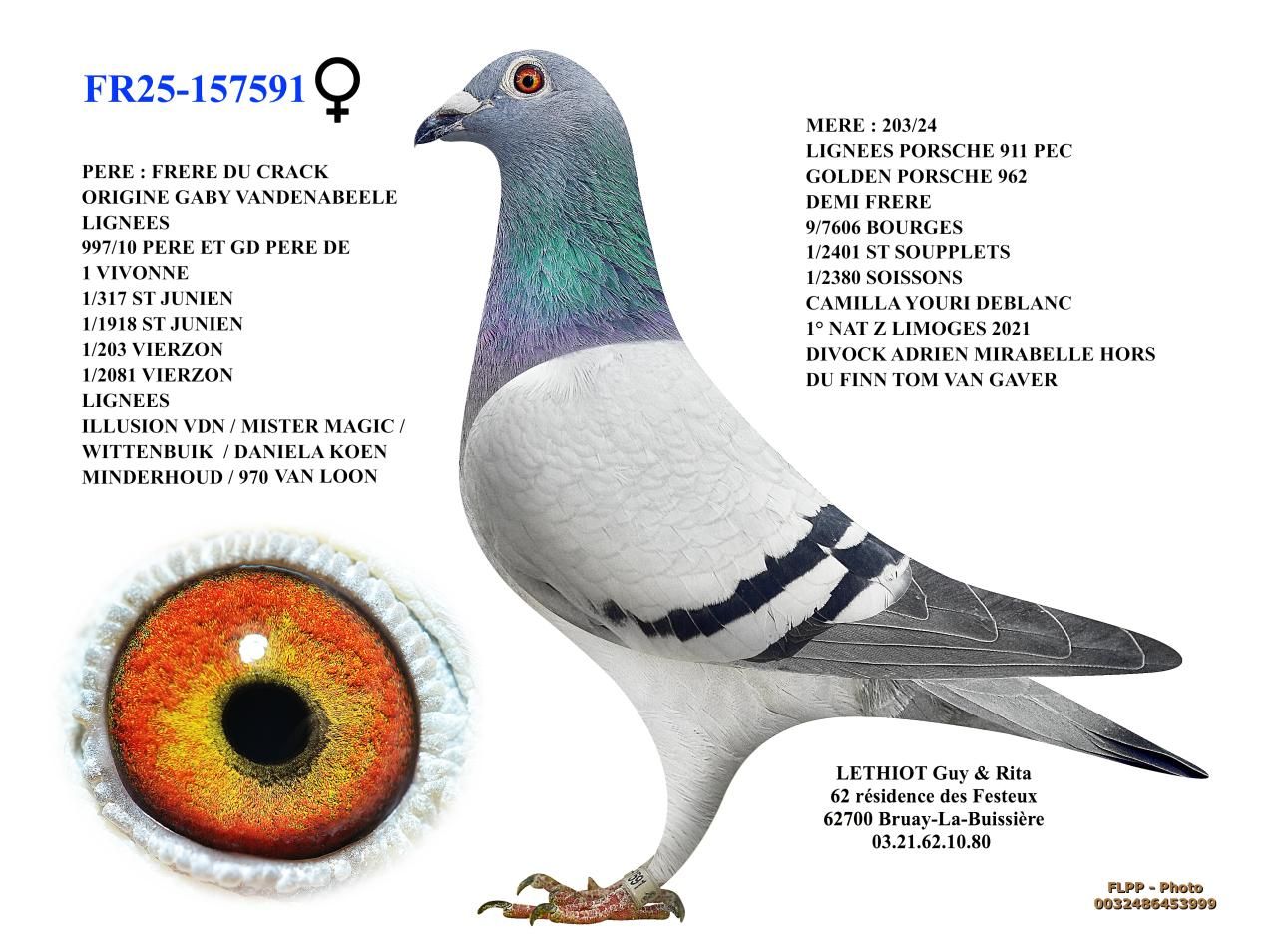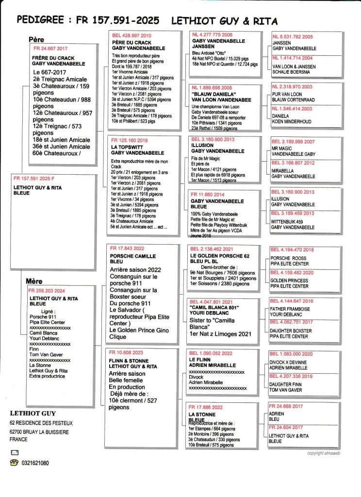N° 11 : 25-157591 : Femelle Gaby Vandenabeele x Golden Porsche x Flinn x Stonne