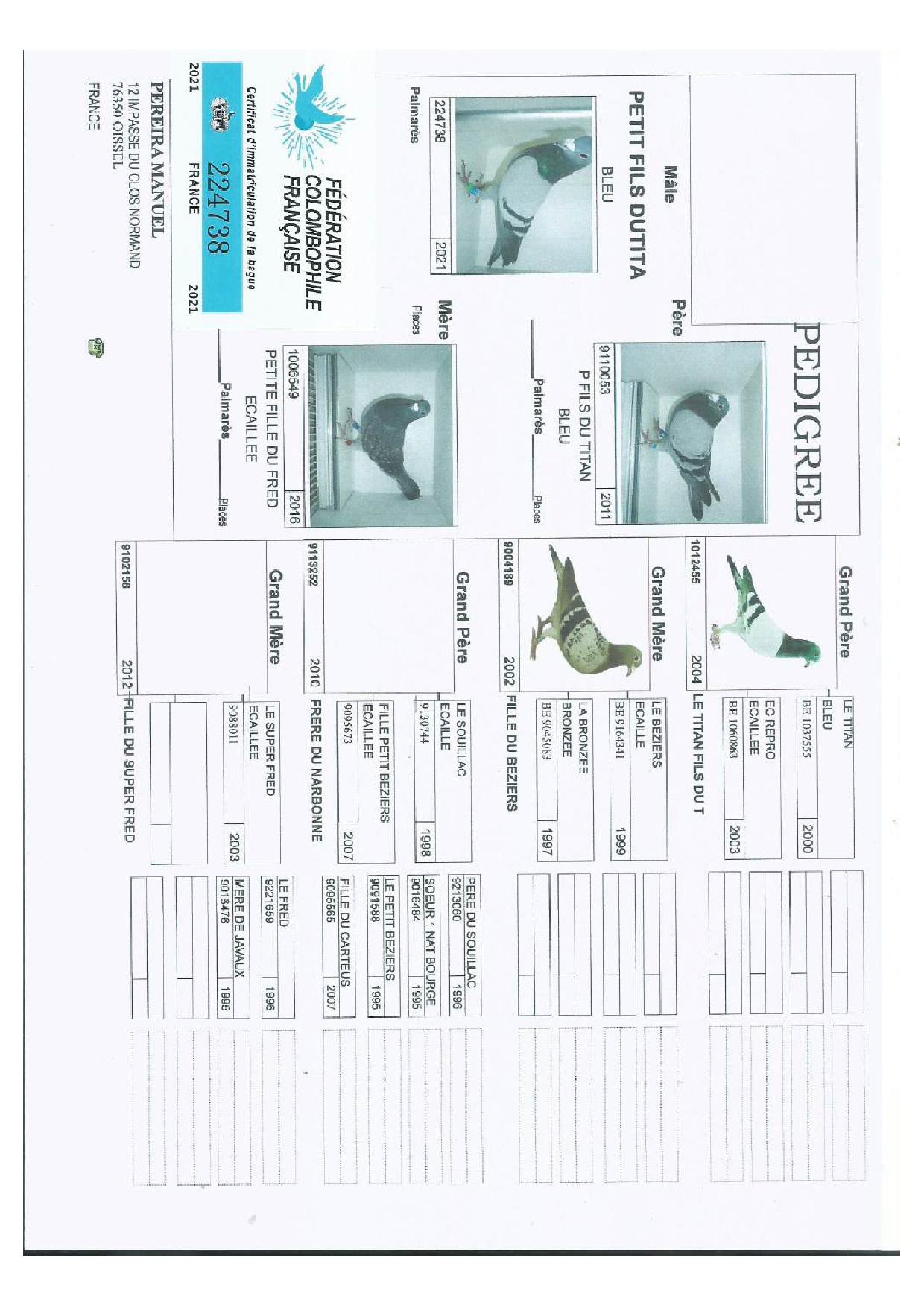 N° 21 : 21-224738 Mâle Bleu