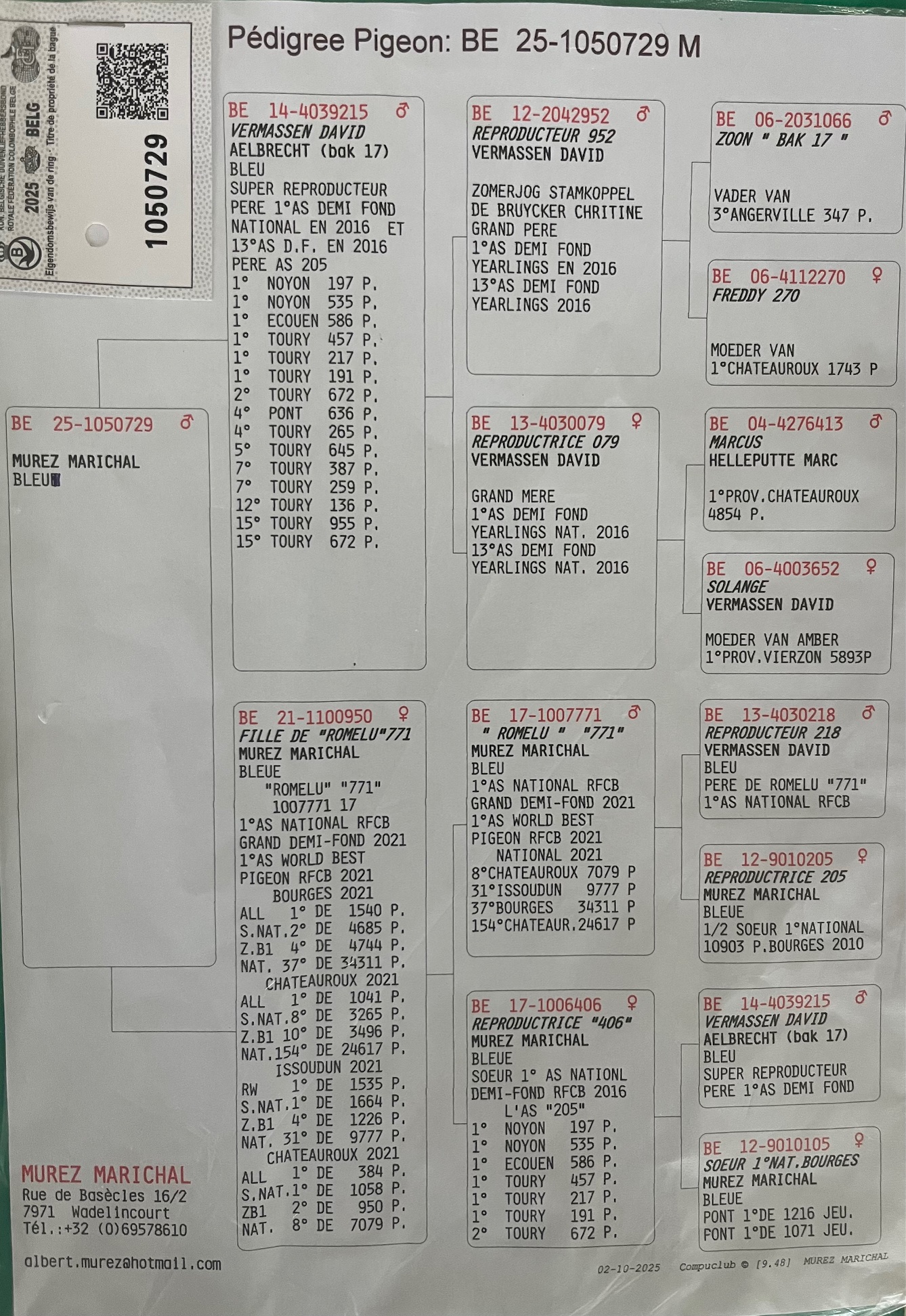 La mère est une fille de Romelu, l’as national grand demi-fond en 2021. Romelu était accouplé à une fille du reproducteur Vermassen donc une sœur des As 205 et 206.