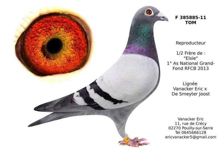 Du côté de la mère, on retrouve les de Smeyter croisés sur les Vitel. Un demi-frere d’Elsie, aspigeon grand fond 2013 chez Joost accouplé une consanguine du Wim de Eric Vitel.