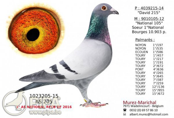 Le pigeon vendu ici est donc consanguin sur l’As 205 magnifier par l’as national grand demi-fond.