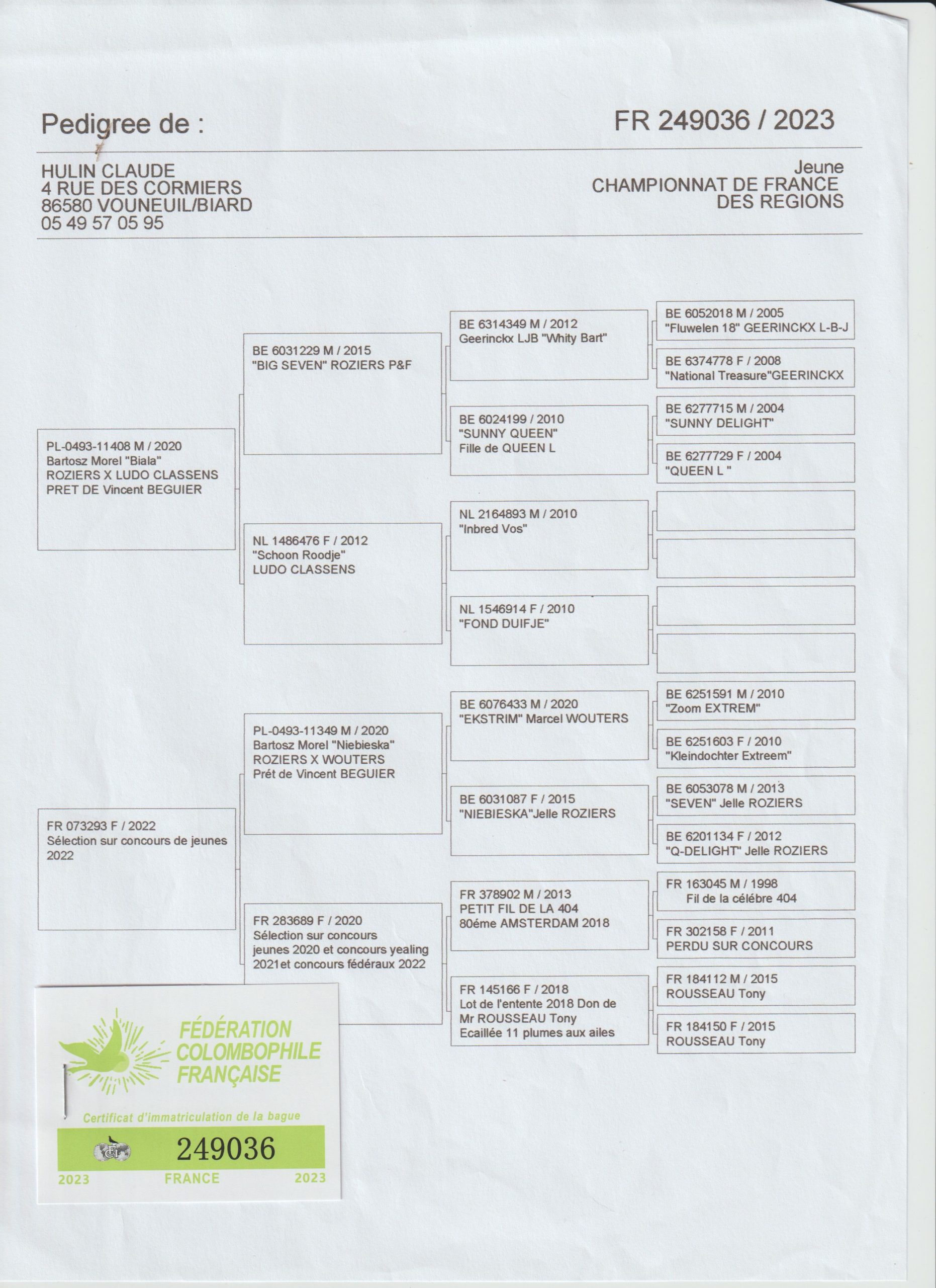 Ce pigeon peut être engagé pour participer à BARCELONE 2026.