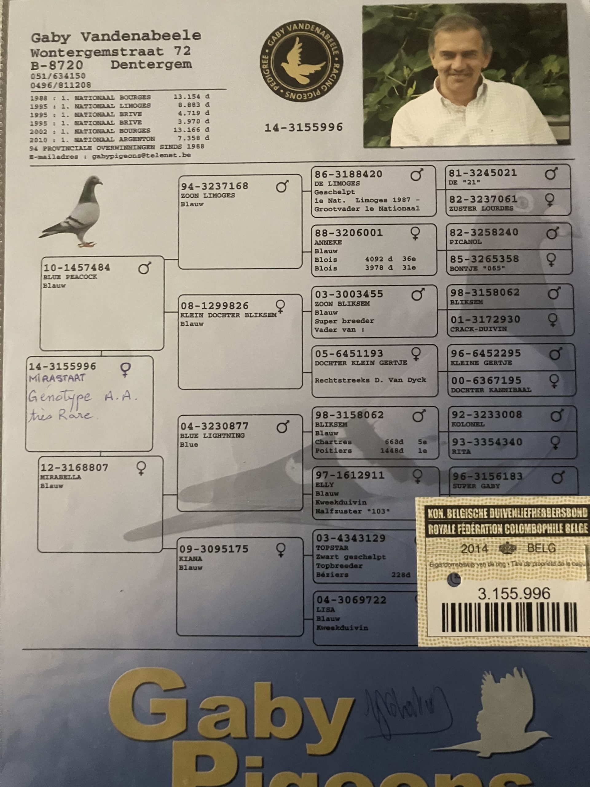 Dominique offre un jeune 2026 sur un coupe Direct de chez Gaby Vandenabeel ,