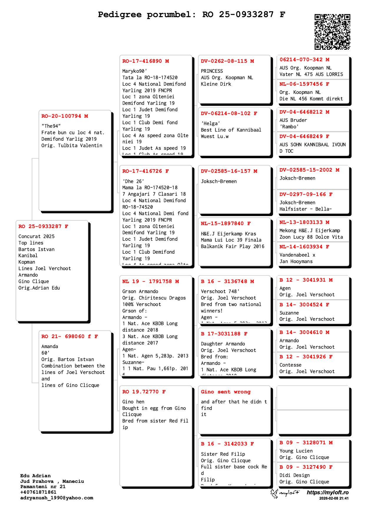 Son succès repose sur une seule chose simple et efficace : investir dans de très bonnes lignées, soigneusement sélectionnées pour leur constance et leur régularité dans les lofts. Un travail de fond, rigoureux, qui fait aujourd’hui d’Adrian Edu un nom incontournable de la colombophilie moderne.