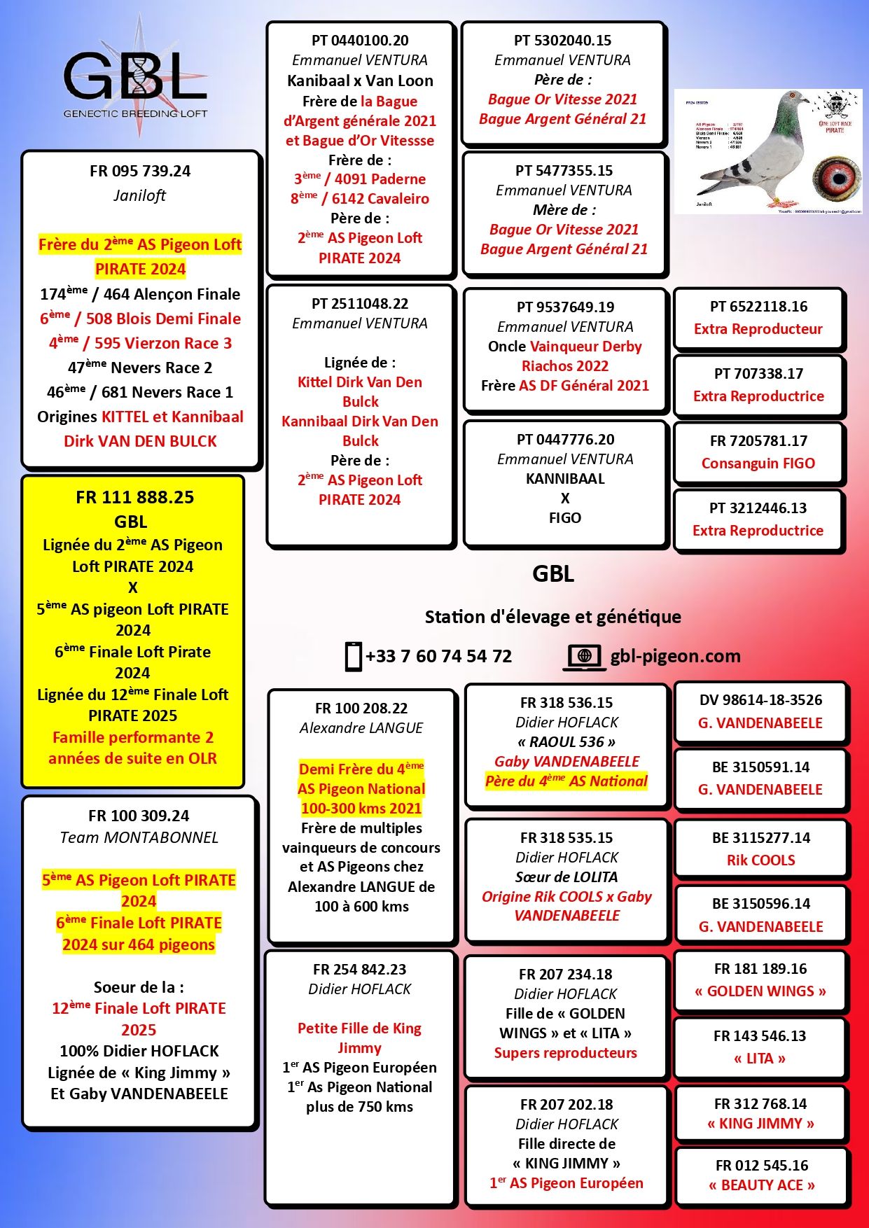 N° 1 : 25-111888 Lignée du 2ème As Pigeon Loft Pirate 2024 25-111888
