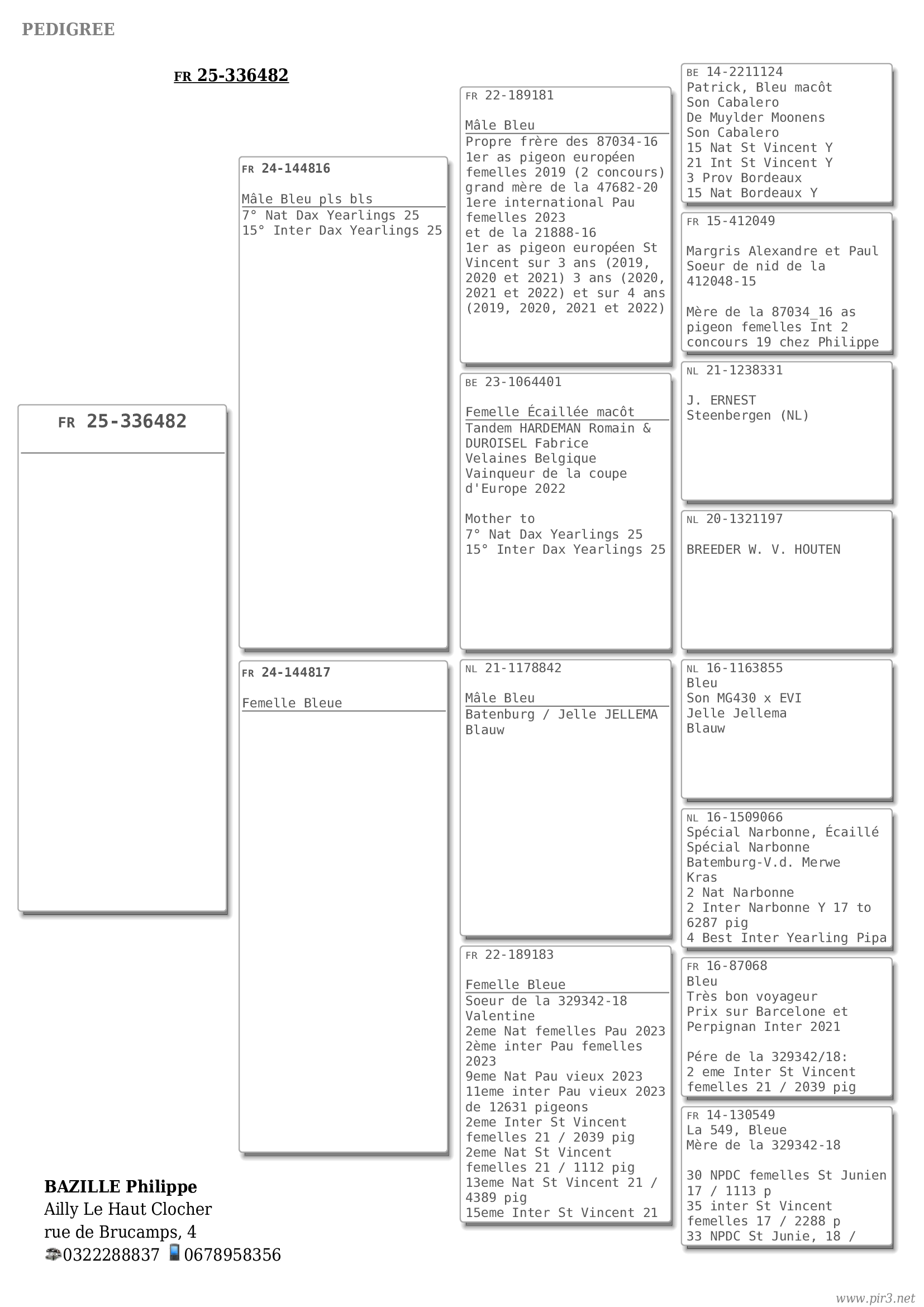 1° As pigeon Européen St Vincent 4 ans 2018, 2019, 2020, 2021