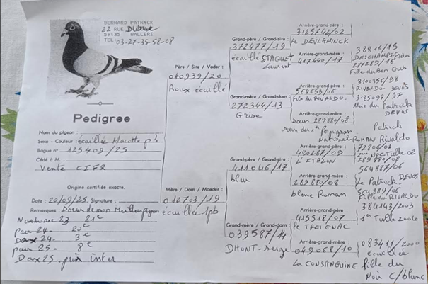 Offre un jeune 2025, frère ou sœur de son meilleur pigeon, primé 5 fois dans les internationaux dont 4fois dans les 21 premiers du CIFR