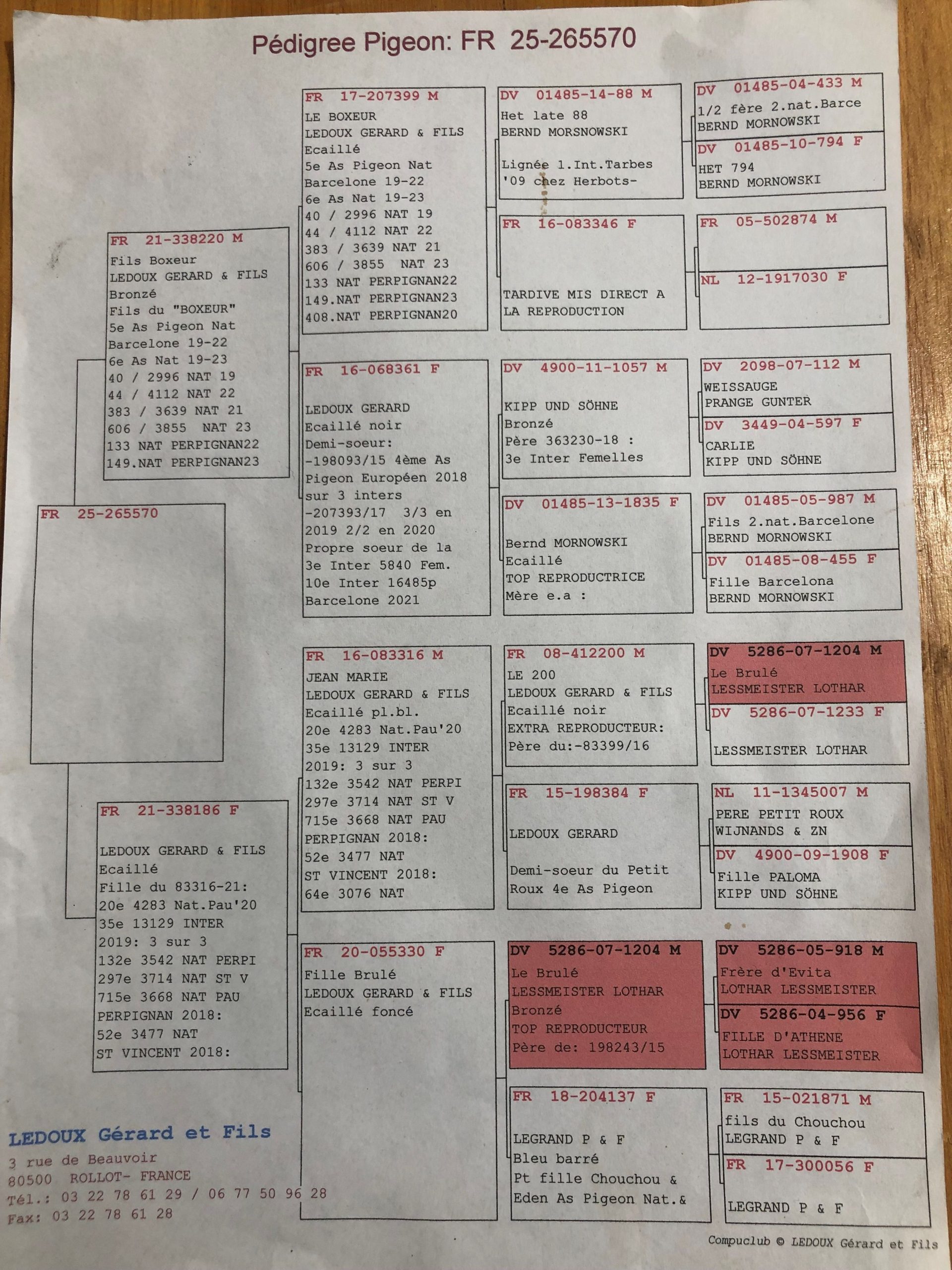 – 2e,3e,5e,17e,19e,31e,37e,41e…As Pigeon National PERPIGNAN sur 5 ans
