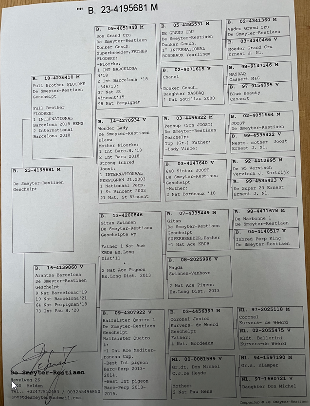 Le jeune sera disponible en mars, voir le beau pedigree ci-dessous, prendre contact avec l’amateur.