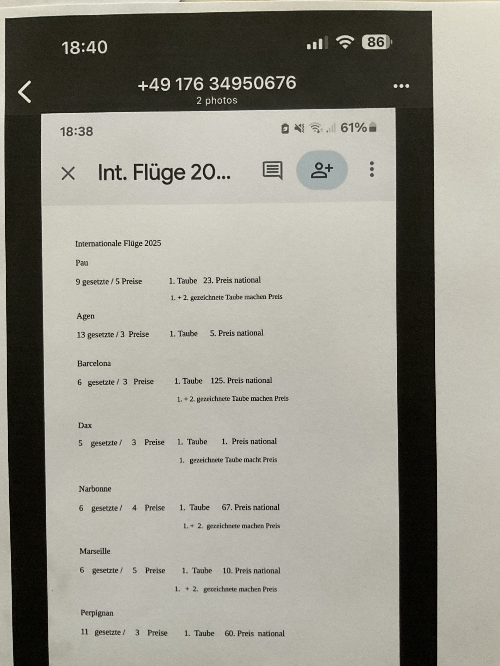 Sur Dax furent enlogés 5 pigeons, 3 seront au résultat dont le PREMIER NATIONAL.