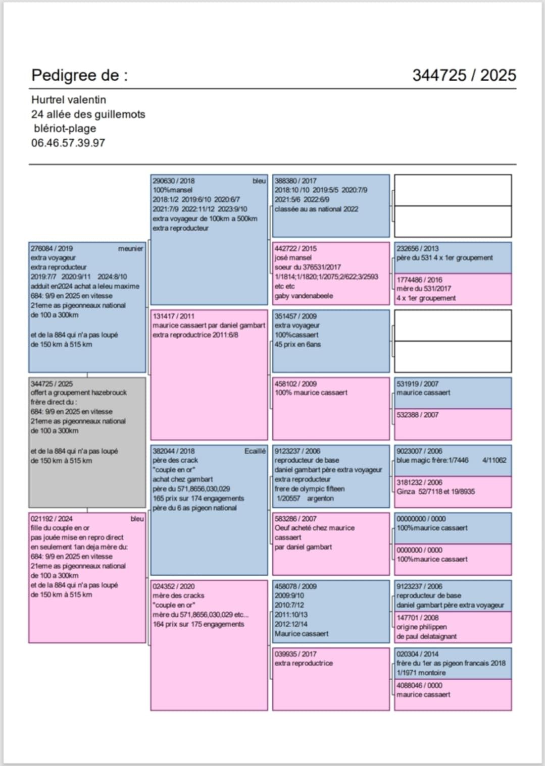 Offre un tardif (voir photo et pédigrée ci dessous)