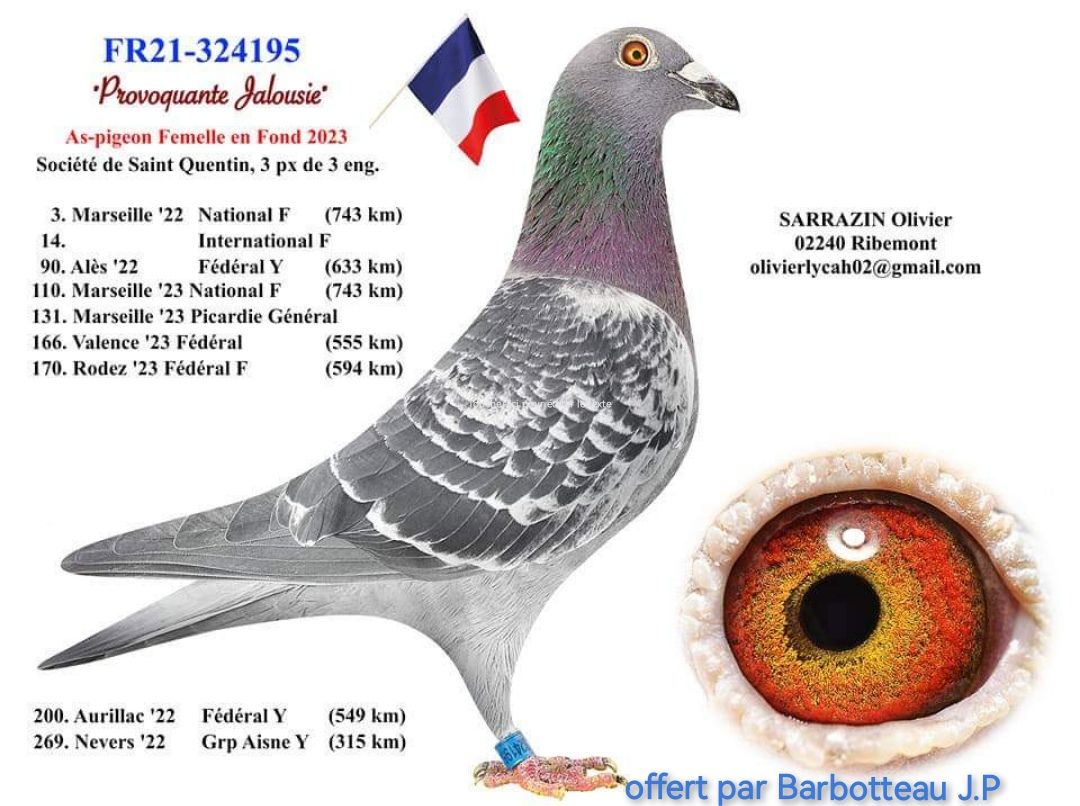 13 ème et 64 ème général de l’Aisne sur 651 pigeons.