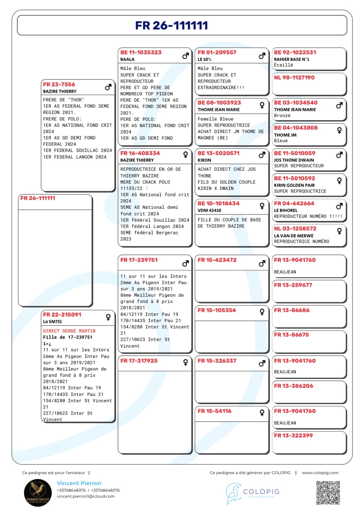 Offre 1 Jeune Voir Pédigrée ci-dessous