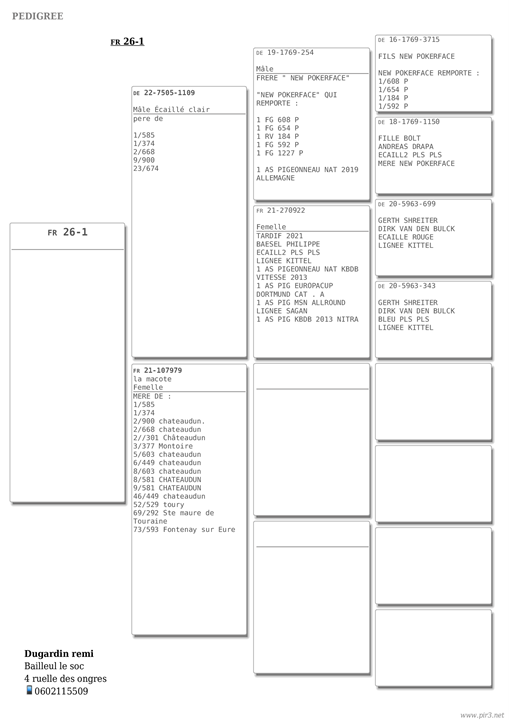 1er 2 et 3 / 900 pigeons Châteaudun 27/04/25 13 prix / 21