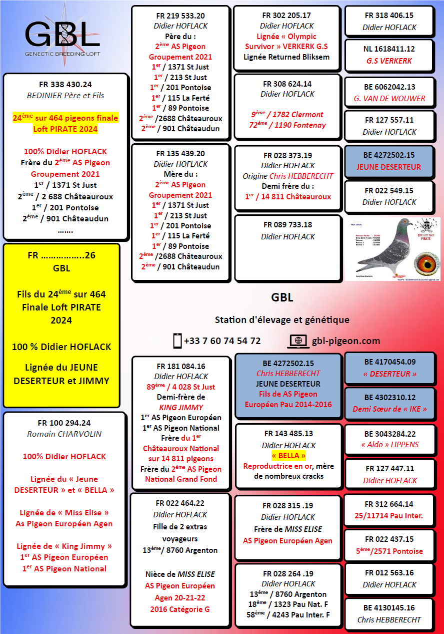 GBL c’est l’histoire de 2 amis, unis par une passion commune pour la colombophilie commencée ensemble à l’âge de 12 ans