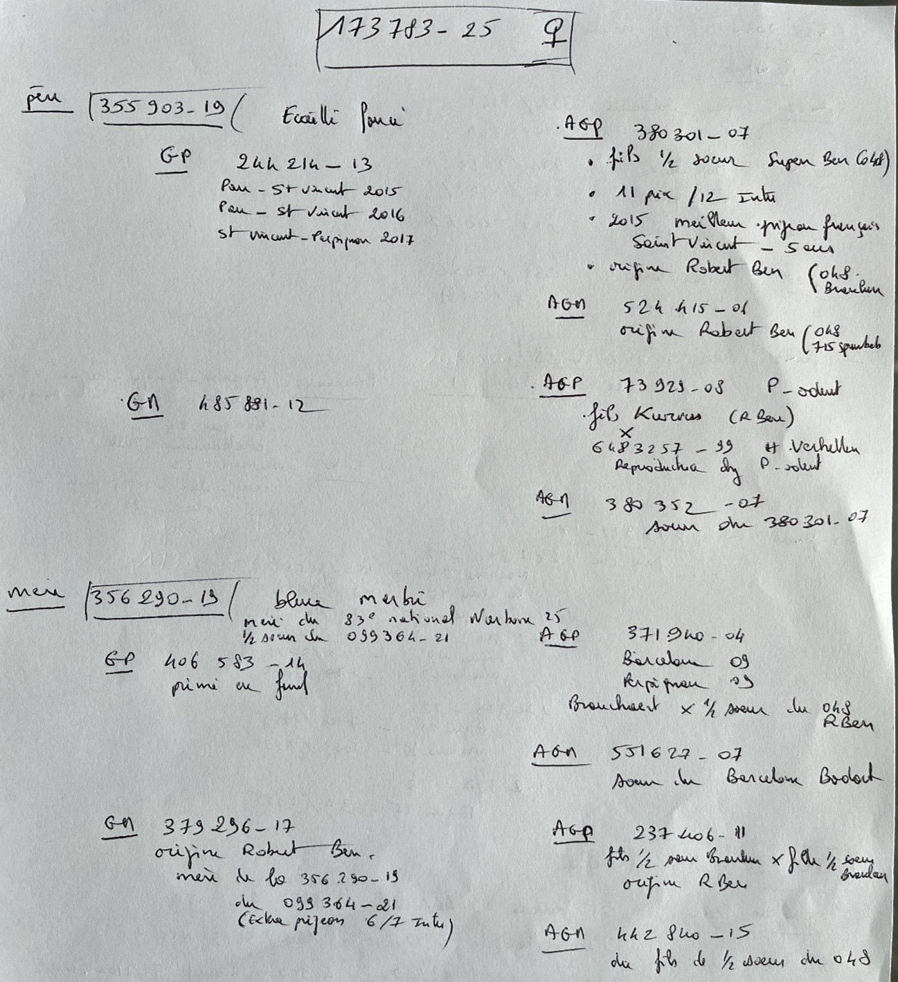 Offre 1 pigeon 2025 dispo à l’issue de la vente Femelle 173783/2025