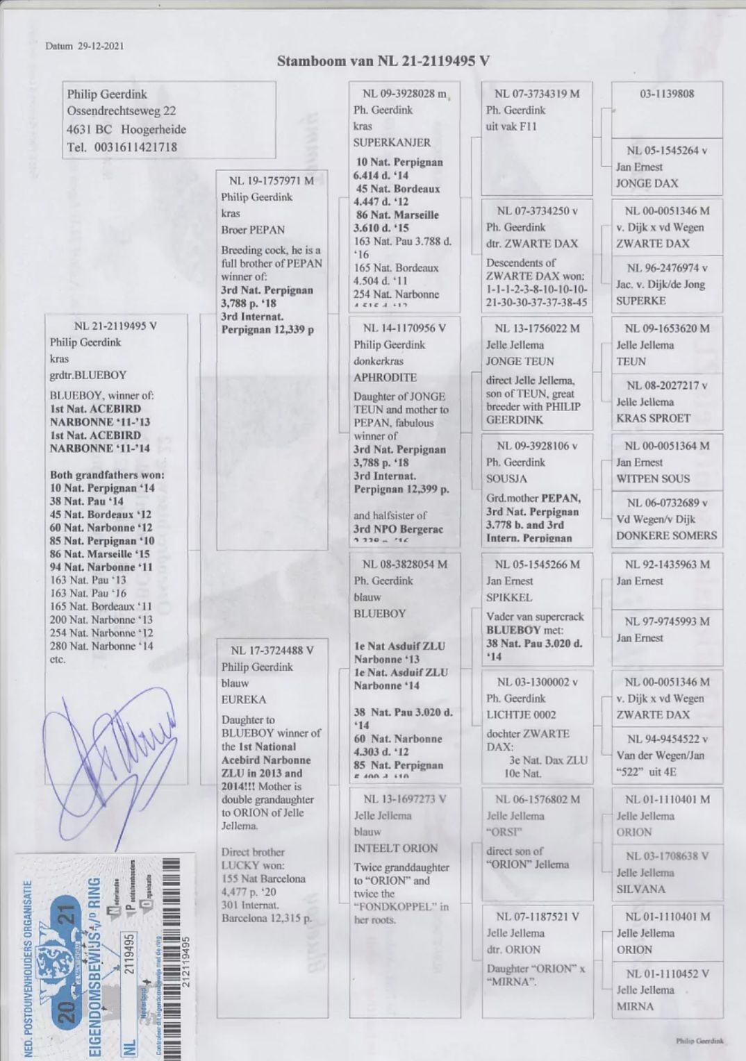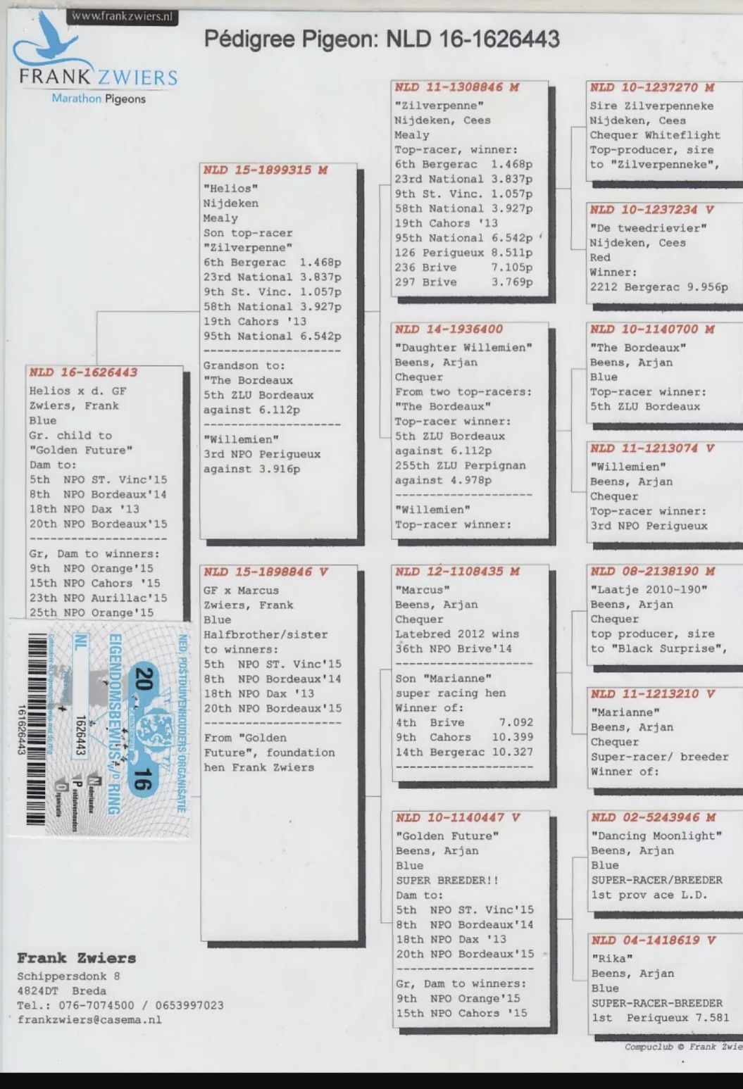 pigeon hollandais de grand fond: Verweij de Haan, Zwiers,C.nijdeken, C de Heijde,W.Muller,
