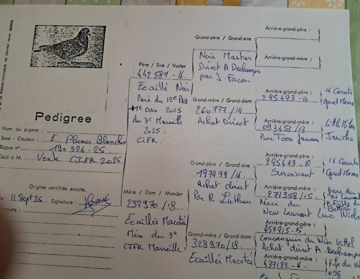 Agen National Vieux (2855 pigeons) : 251ème, 402ème, 439ème, 484ème, 504ème, 510ème et 538ème sur 19 engagés