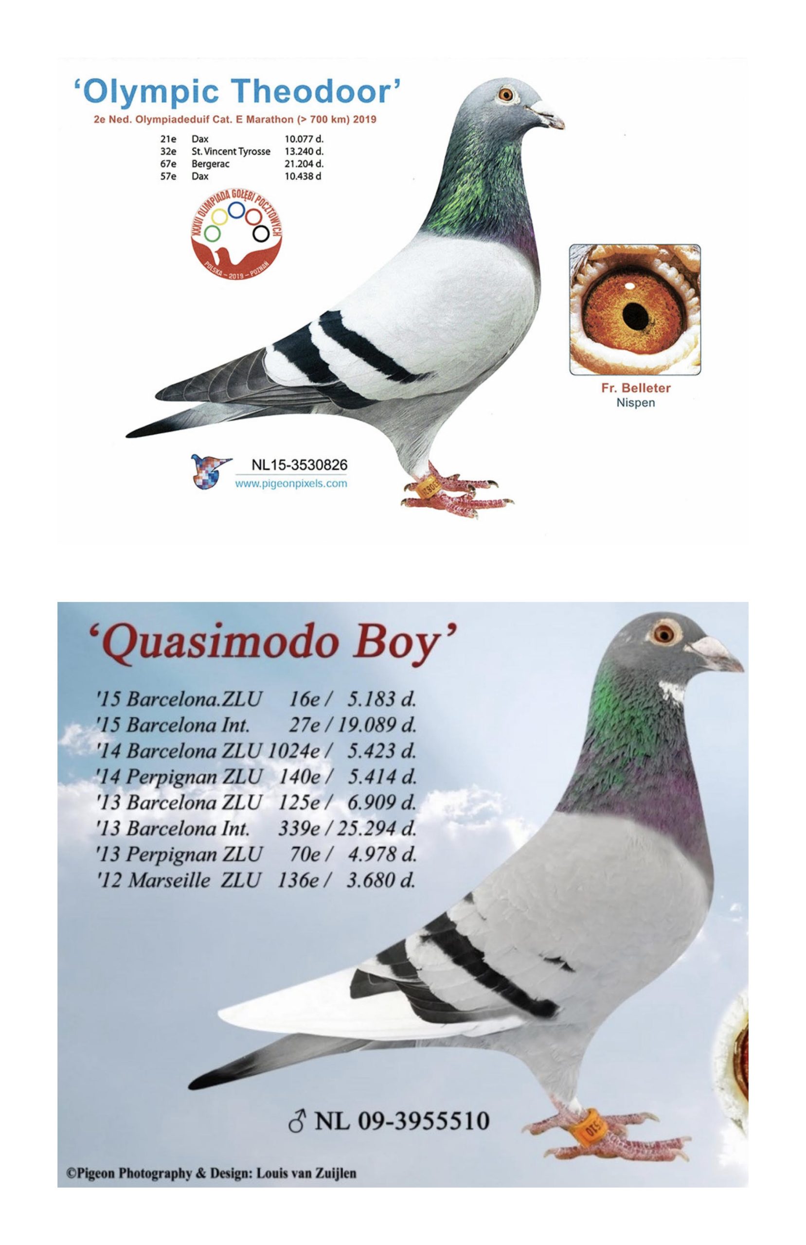 La lignée Van Geel conserve ses qualités de génération en génération, pour l’anecdote le Quasimodo Boy a remporté le 16ème de Barcelone, son propre fils les 22e-30e sur l’étape catalane, et son petit-fils imite son grand père avec le 16ème Barcelone.