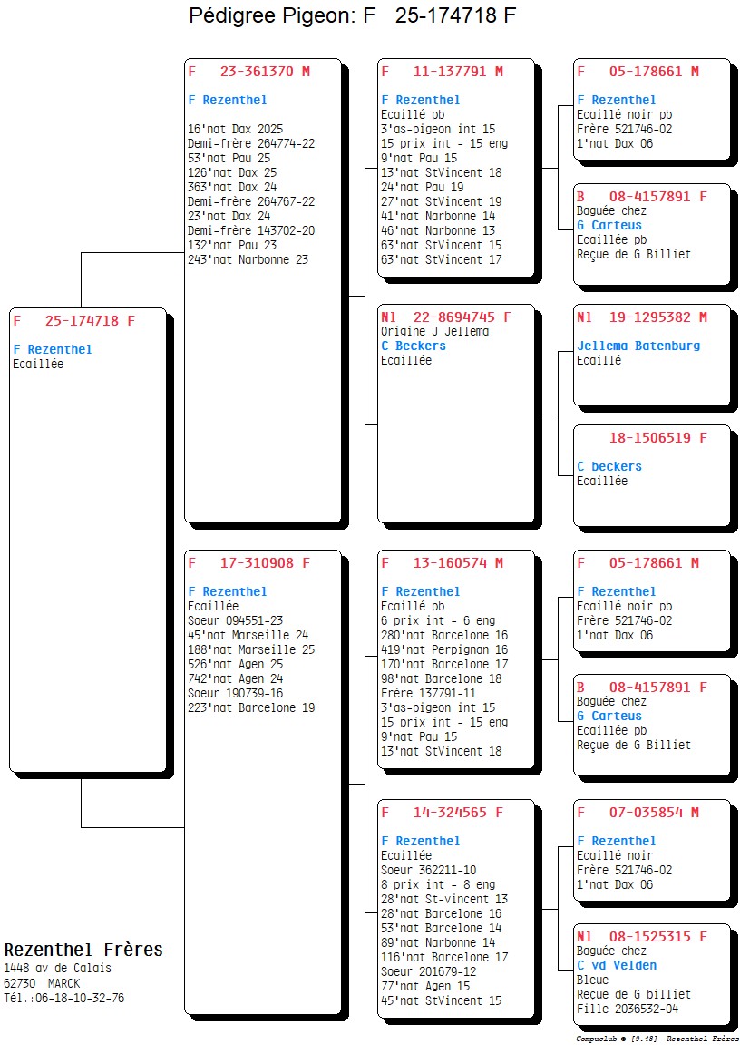 Gilles et Bertrand Rezenthel nous offre une femelle. On vous laisse apprécier le pédigrée…