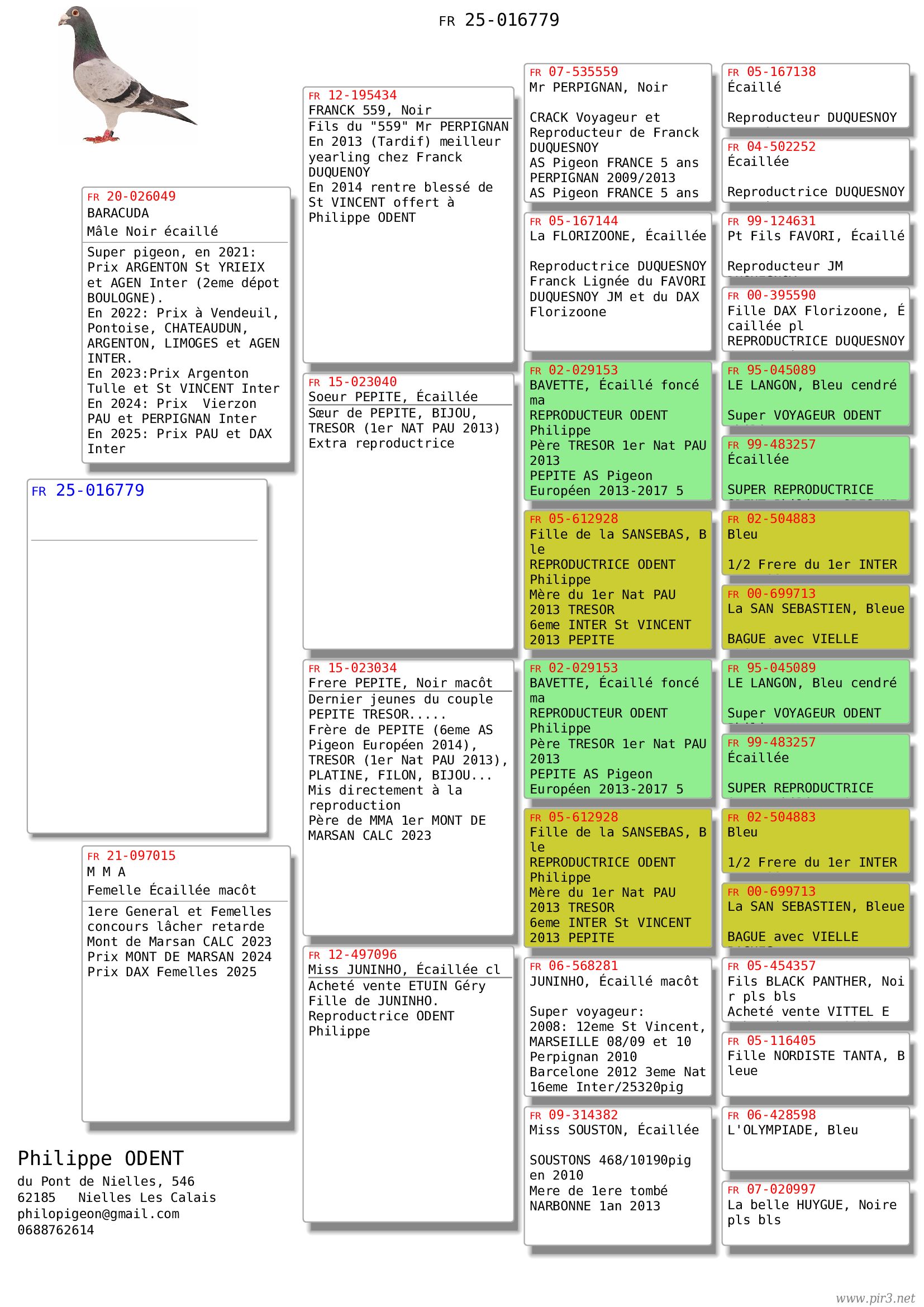 Installé à Nielles-lès-Calais, Philippe Odent fait partie du cercle très restreint des grands noms du fond et grand fond français. Champion exigeant et organisateur engagé, il a su allier rigueur sportive et esprit fédérateur au service de la colombophilie nationale.