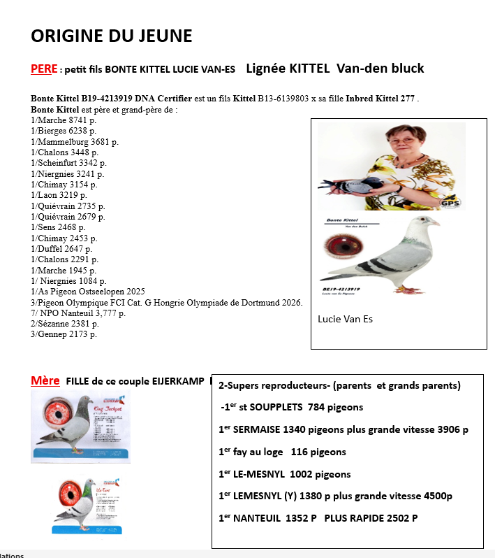 1,2,3,4,5 en 1 an sur 748 pigeons 17 prix sur 26 pigeons enlogés ·
