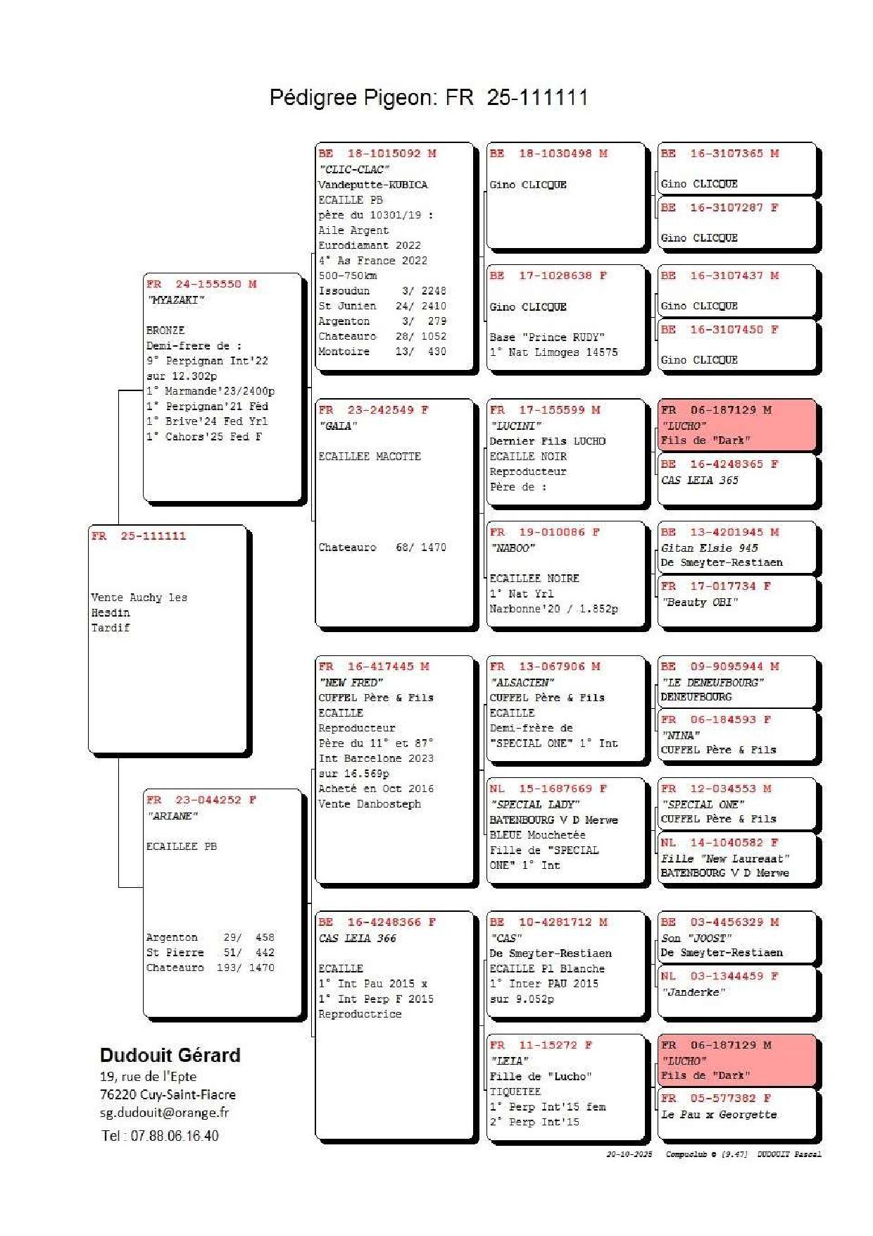 Gérard nous fait le plaisir de nous offrir un jeune tardif 2025 disponible à la fin de la vente (voir pedigree)