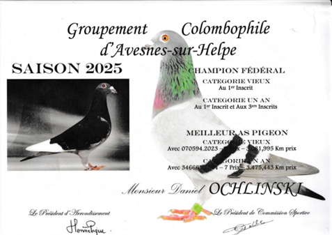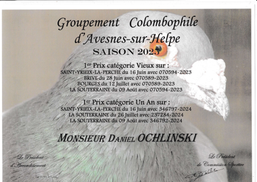 Amateur ayant repris la colombophilie  en 2024 avec pour sa première saison: