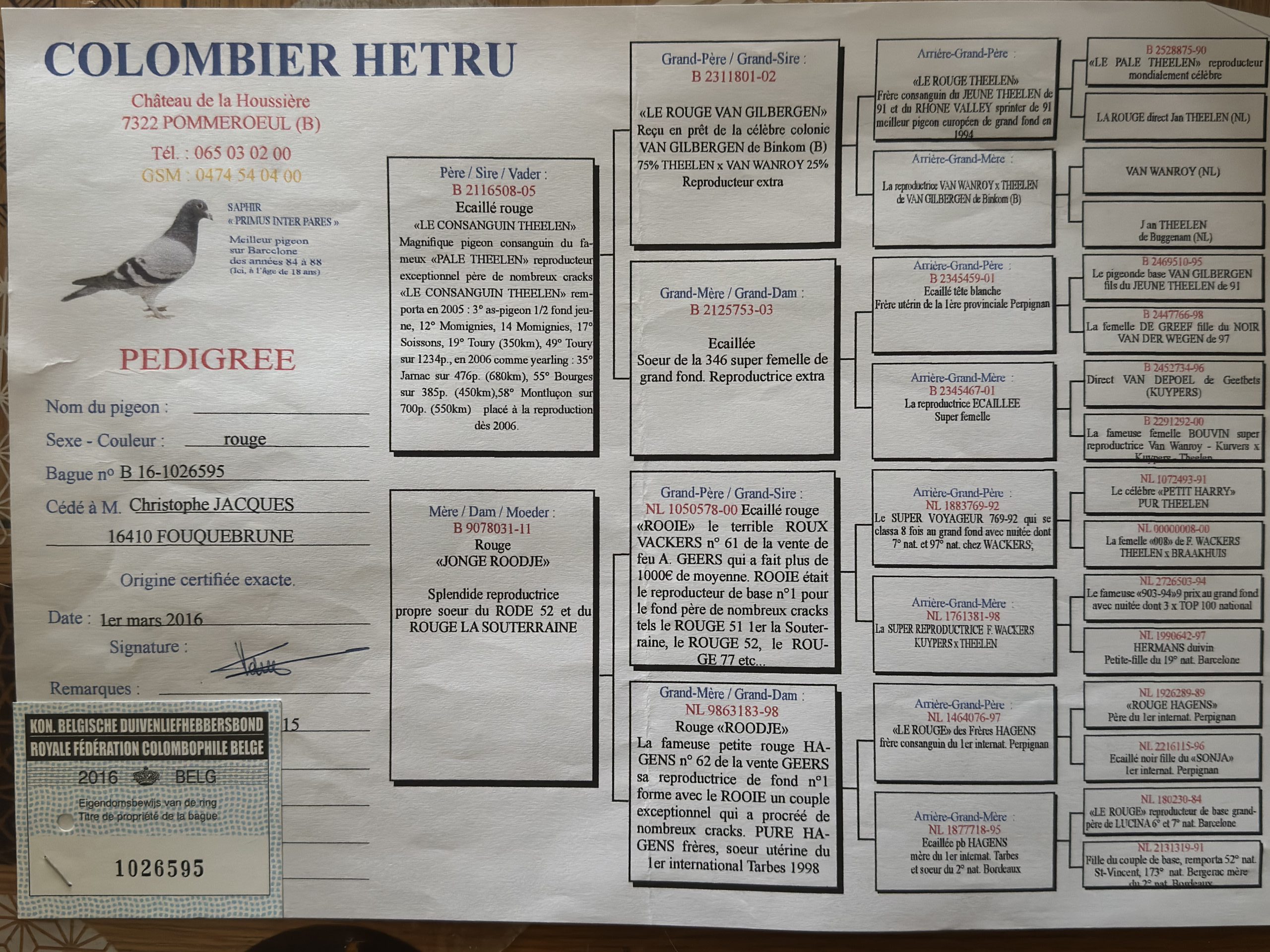 Christophe nous offre une tardive, voir pédigrée des parents et photo de la femelle