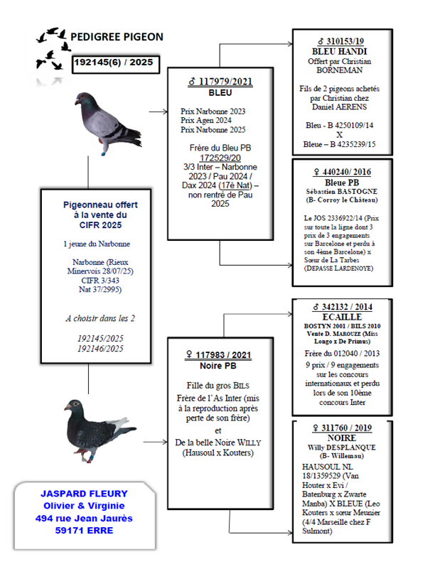 Narbonne National vieux (2995 pigeons) : 37ème, 428èmeet 621ème sur 5 engagés.