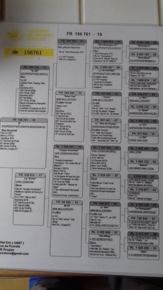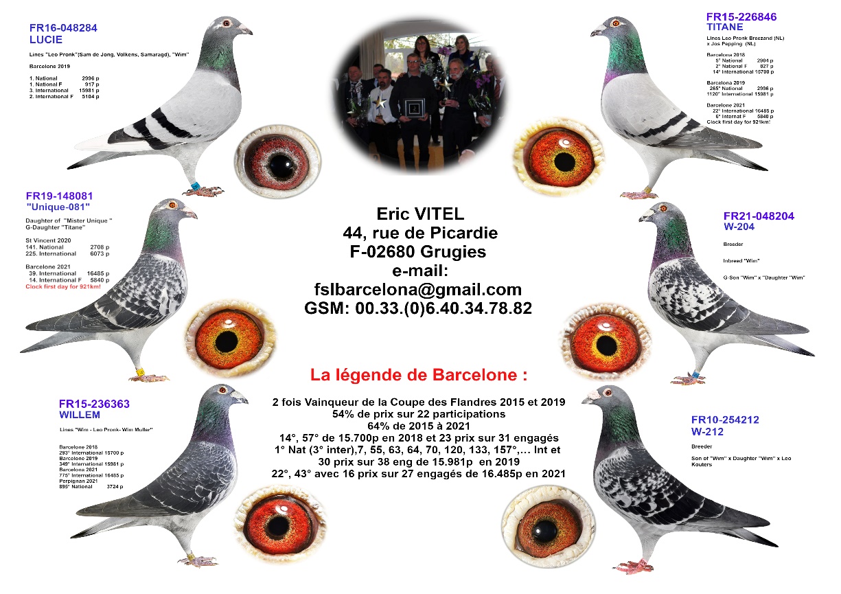 DERNIERE INTRODUCTION ; LIGNEE du »WIM » DE SON AMI : ERIC VITTEL de GRUGIES , LE CHAMPION FRANÇAIS INCONTESTE DE « BARCELONE » , AVEC DES RESULTATS