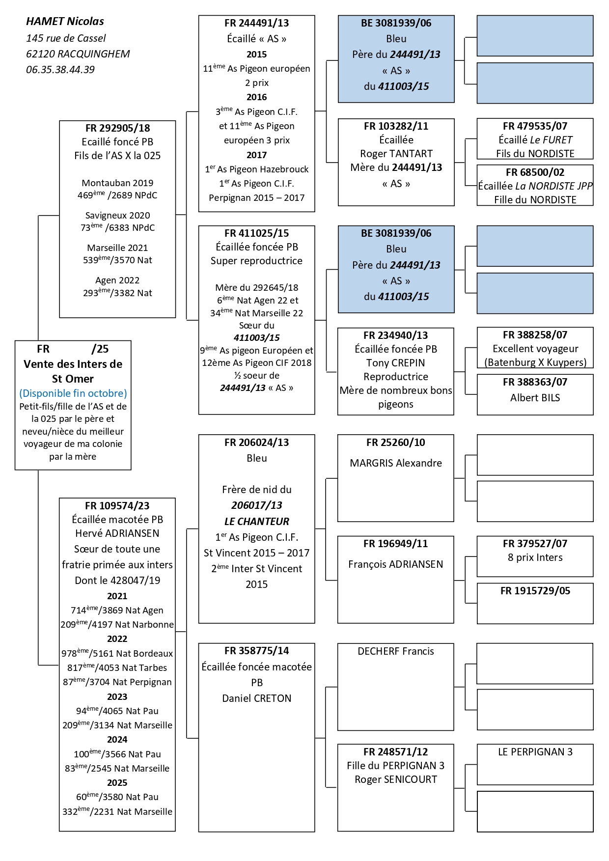 C’est le cas de Nicolas Hamet avec l’As Hamet, un extra pigeon qui sur 3 ans a remporté de nombreux titres internationaux.