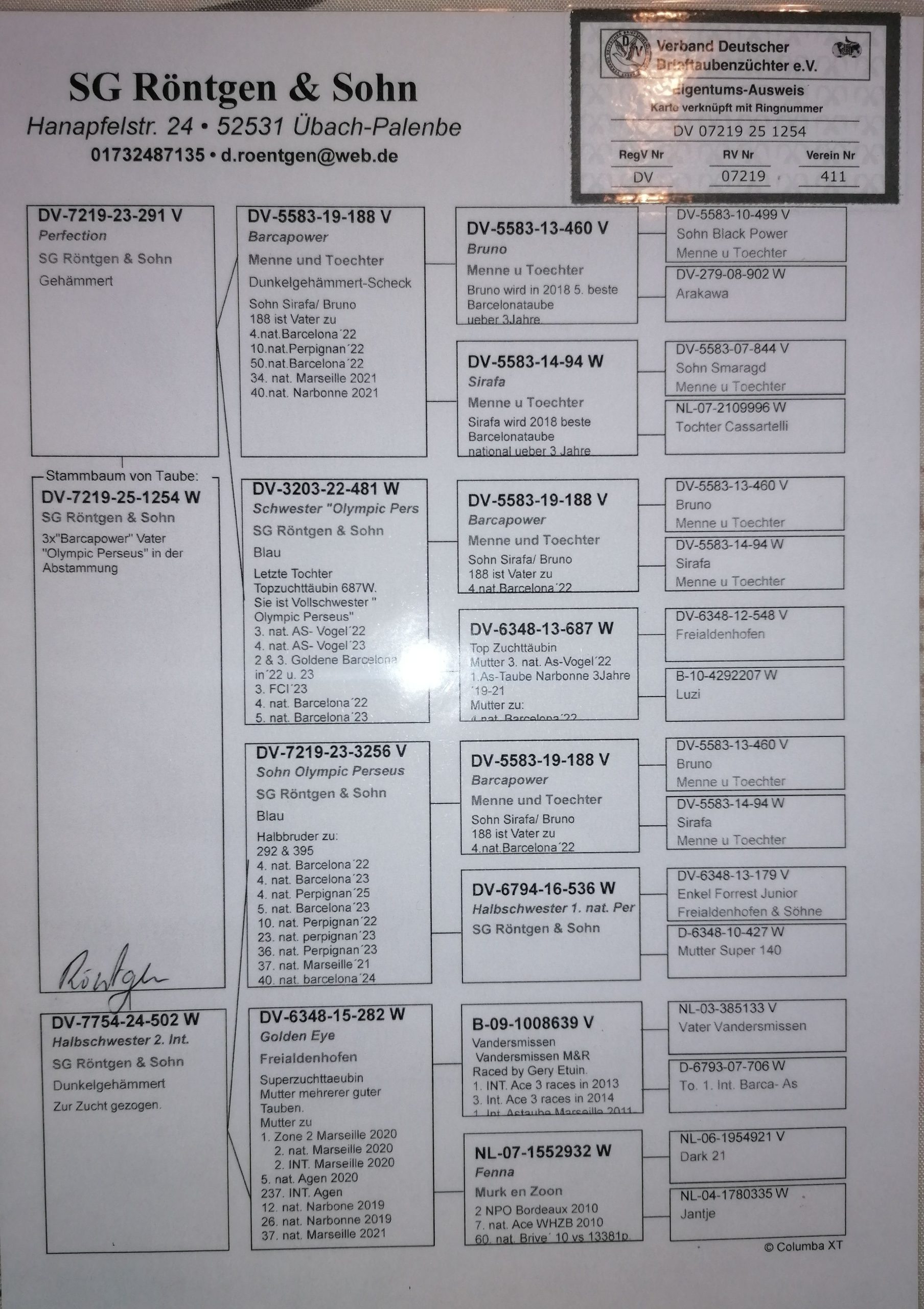 Offre 1 Pigeon Voir Pédigrée et Photo ci-dessous