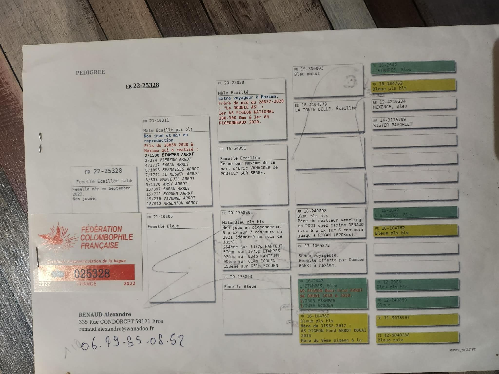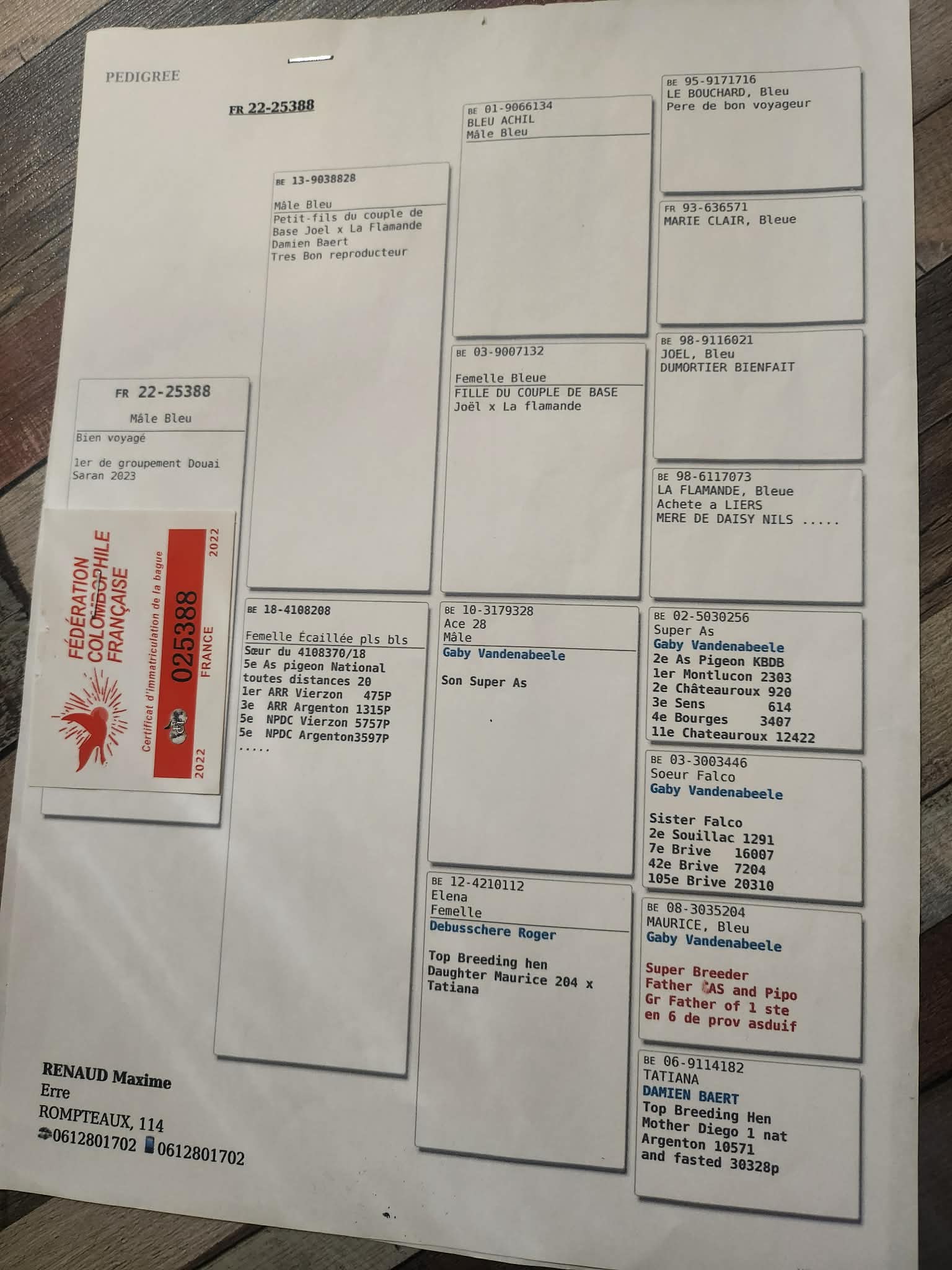 Ci-dessous pedigree père et mère.