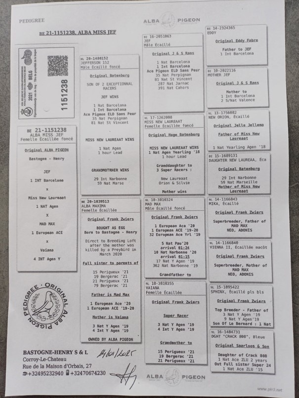 Marseille National (2231 pigeons : 22ème, 25ème, 26ème, 30ème, 83ème, … et 12 prix de 22 engagés.