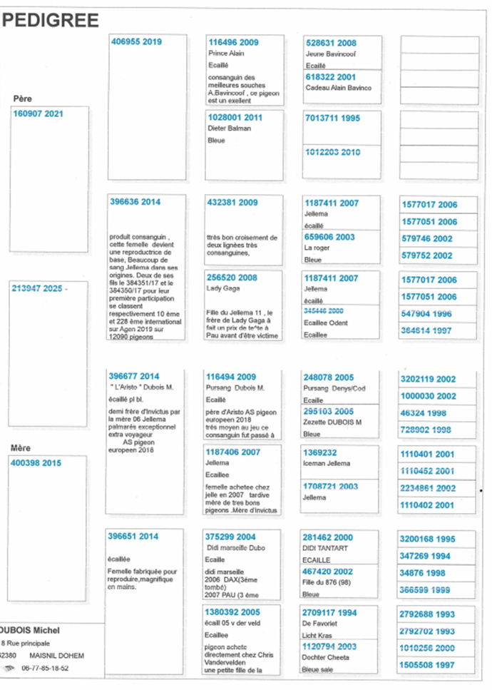 Offre un pigeon 2025 disponible à l’issue de la vente. (voir pédigrée)