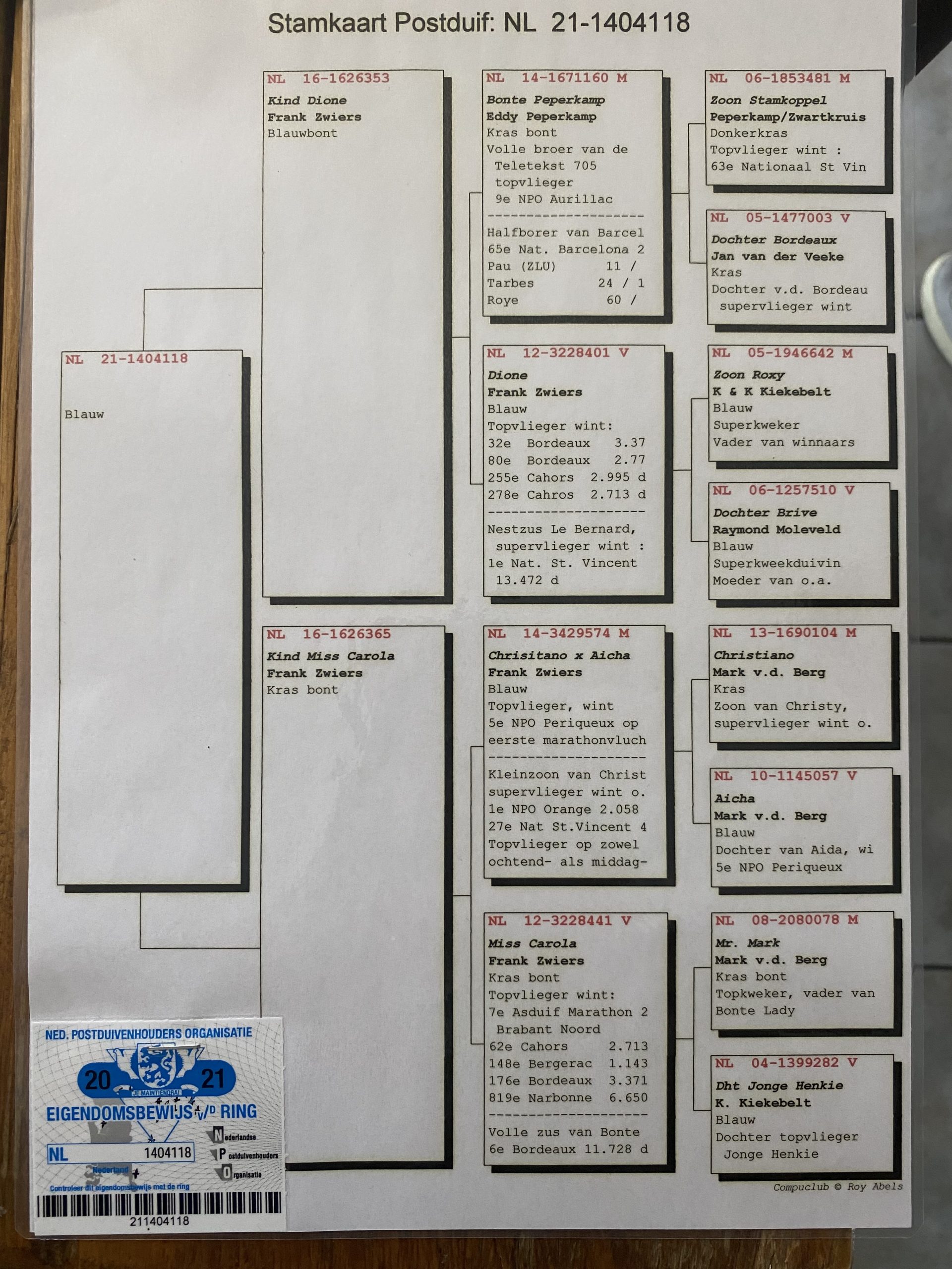 Voir pedigree des parents de la femelle offerte