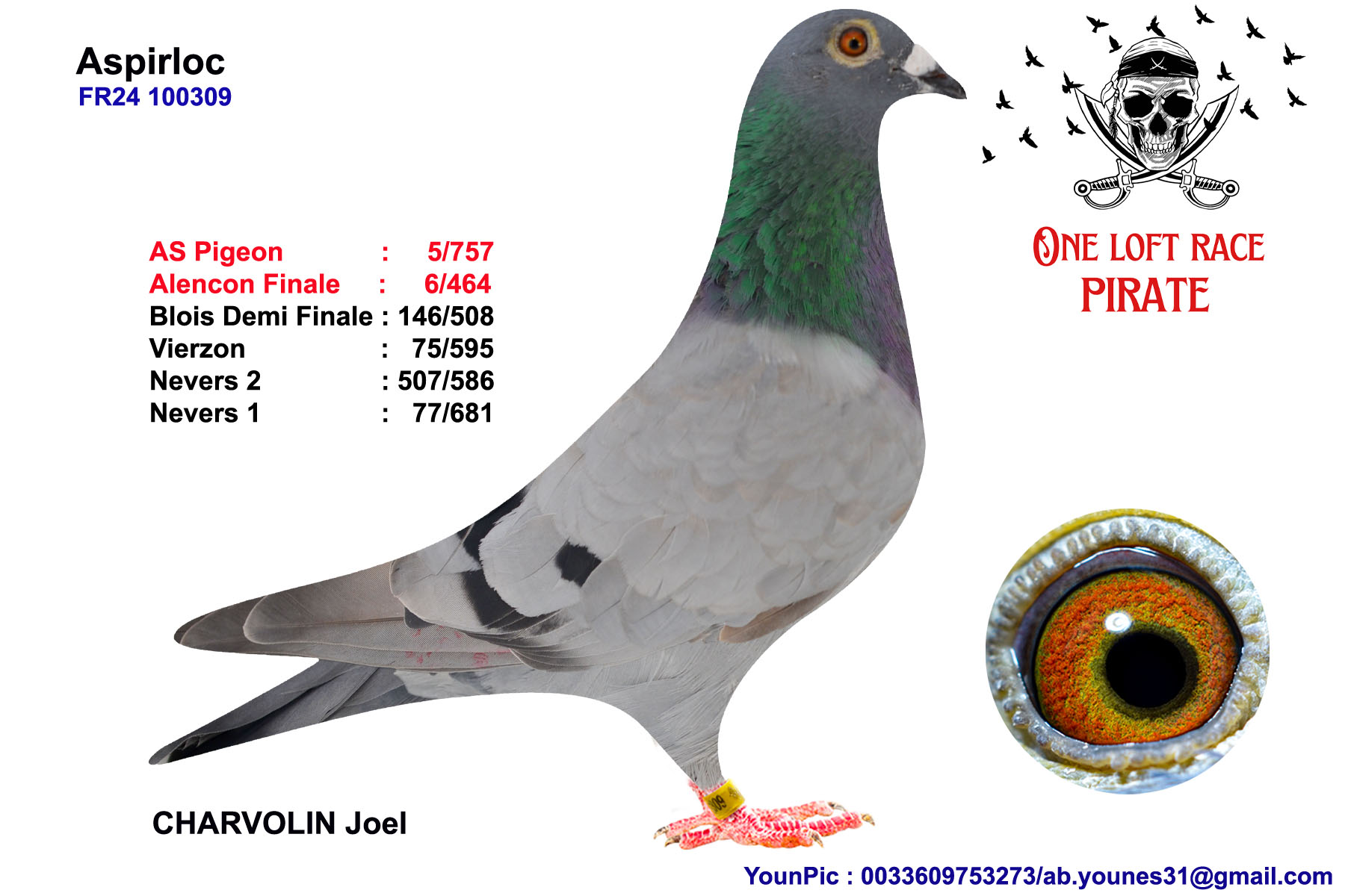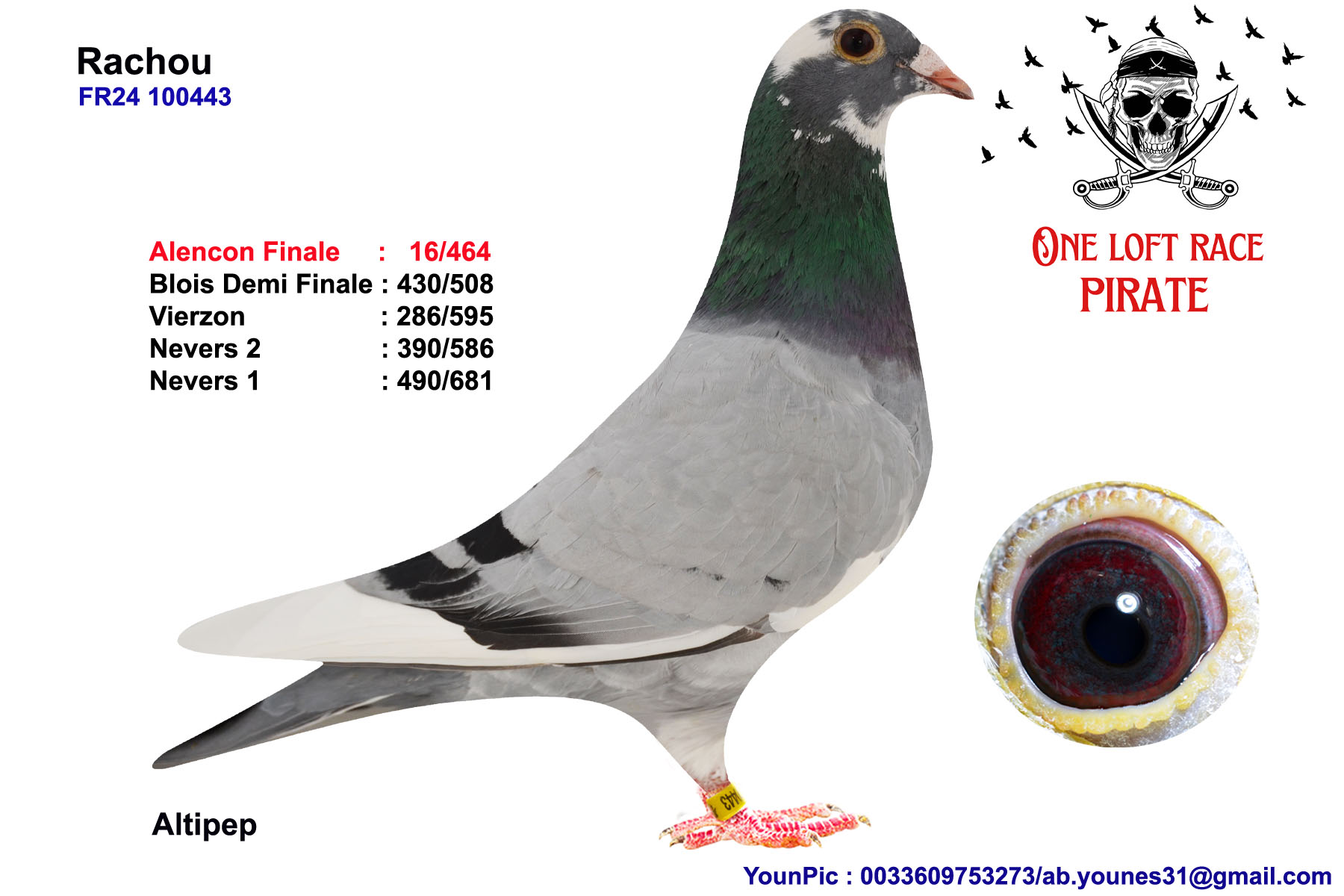 N° 2 : 25-342332 Femelle Nièce 5eme AS Pigeon et 6eme Finale LOFT PIRATE 25-342332