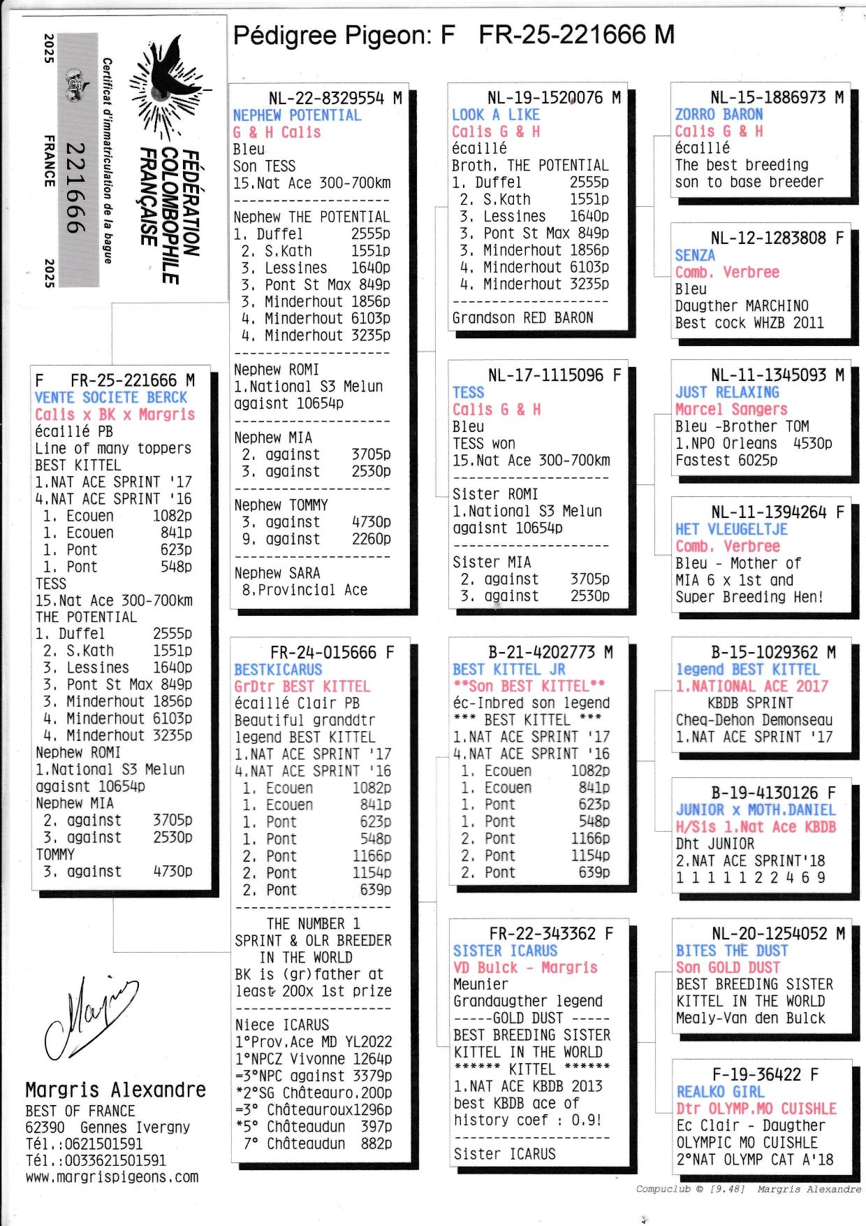 Offre un pigeon prêt a accouplé à prendre à Berck Voir Pédigrée et Photo ci-dessous