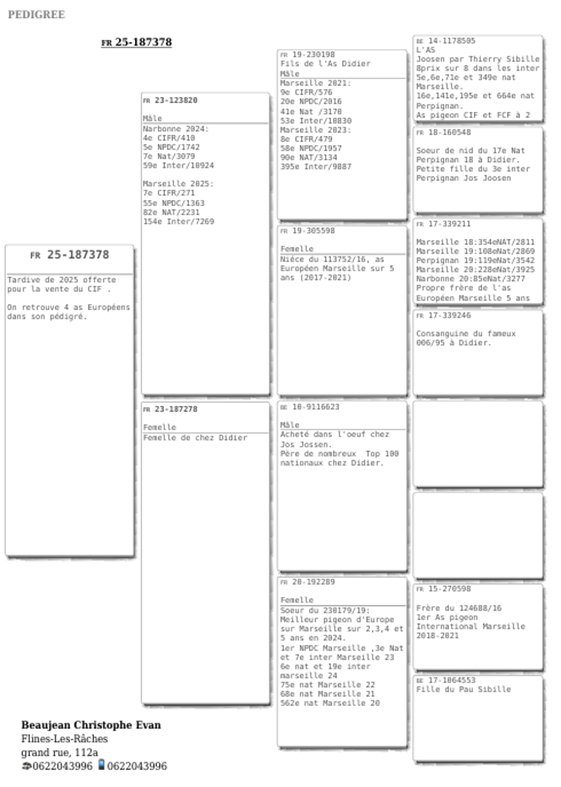 Bon pour une tardive 2025 (voir pédigrée) présent à la remise des prix le 07/02