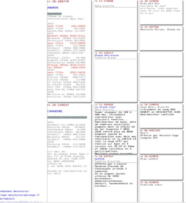 L’ensemble de la colonie est consanguine plus ou moins éloignée de l’européen du team CFTT As pigeon CIF et PIPA Ranking Agen sur 3 ans.