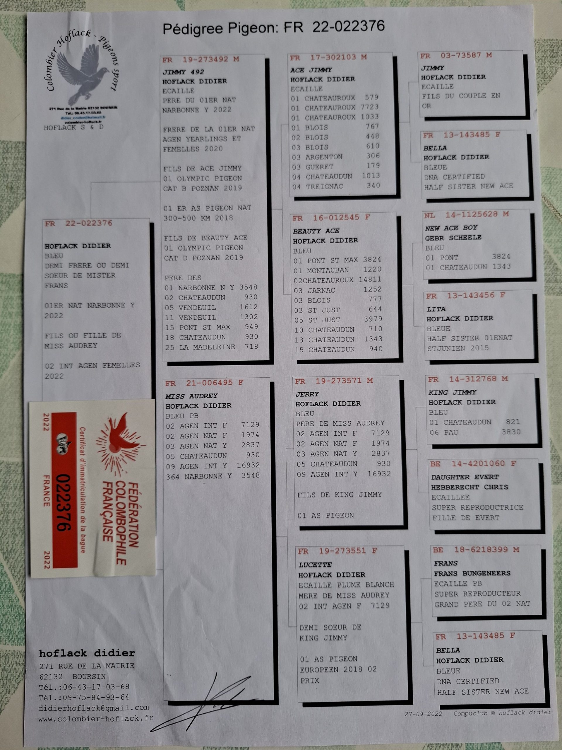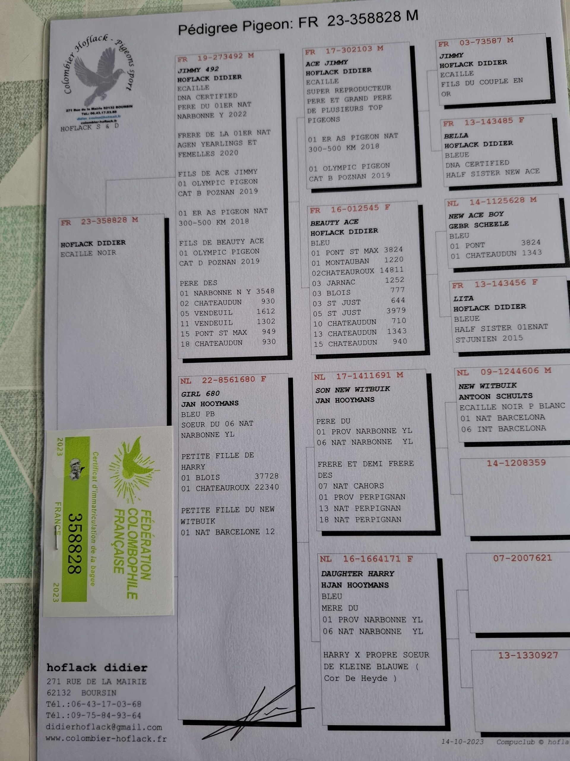 Offre 1 Jeune voir pédigrées des parents ci dessous