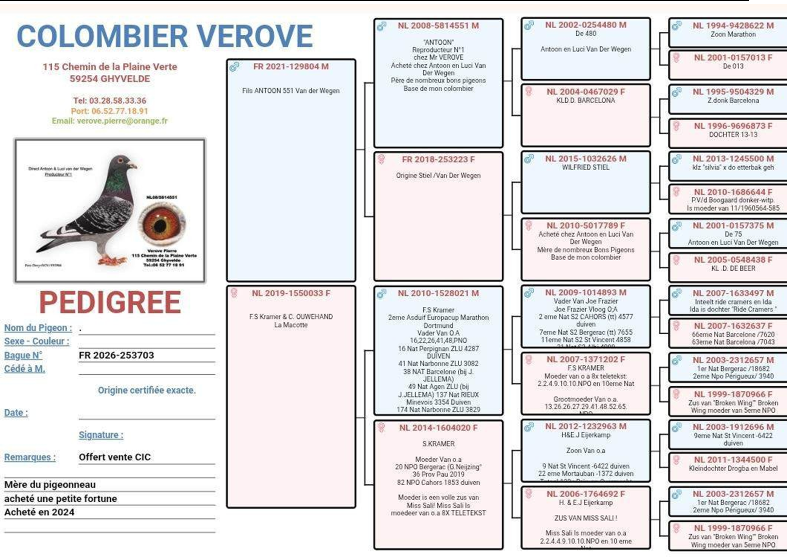 Offre 1 jeune 2026 Voir Pédigrée et Photo ci dessous