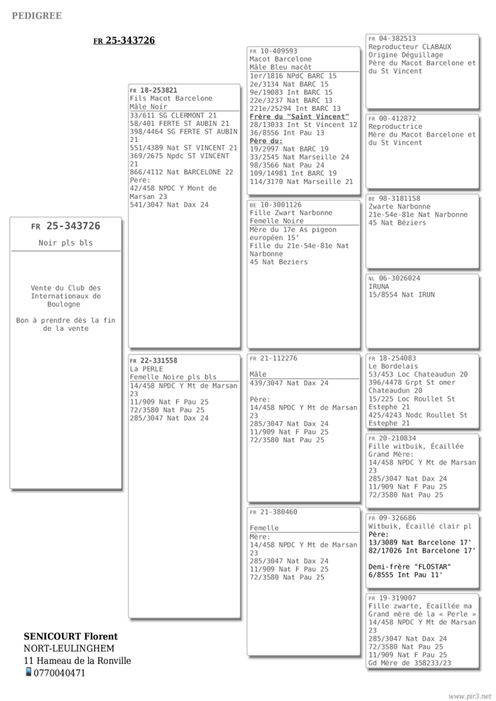 Ci-joint le pédigrée du jeune offert pour la vente du CIB ainsi que les résultats 2024 et 2025.